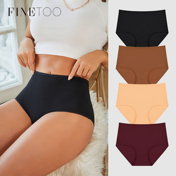FINETOO Cotton Women’s Panties Plus Size Seamless Underwear High Waist Solid Briefs Breathable Stretchy Lingerie Sports Shorts