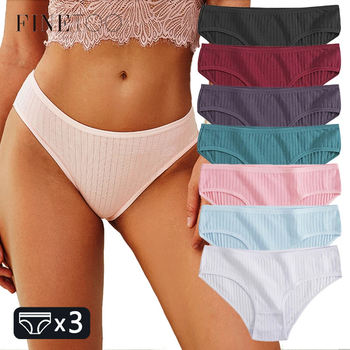 FINETOO 3Pcs/Set Cotton Panties for Women Sexy Low Rise Briefs Ladies M-XL Underpants Female Solid Color Lingerie Girl Intimates