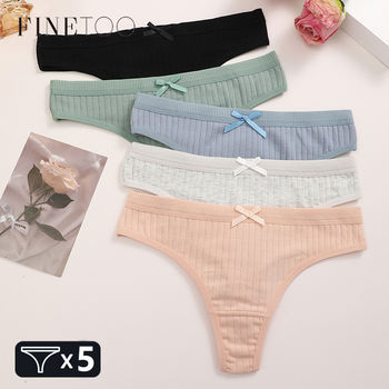 5Pcs Cotton Bow Tie Ribbed Underwear for Women Sexy Striped Panties Low Waist Soild Thongs Female Stretchy T-back Lingerie M-3XL