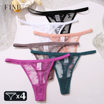 FINETOO 4Pcs/set Lace Thongs Sexy Low Waist Bikini Panties S-XL Lace G-string Underpants Comfortable T-Back Underwear Lingerie