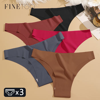 FINETOO 3PC Women Seamless Underpants Thongs Sexy Low Waist G-String Panties Female Solid Color Traceless Bikini T-back Lingerie