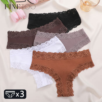 FINETOO 1Pc Lace Thongs Sexy Low Waist Biniki Panties Women S-XL Patchwork G-string Underpants Female Thong Underwear Lingerie