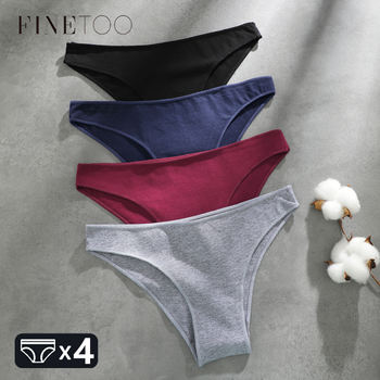 FINETOO 4Pcs Women Cotton Thongs Adjustable Low Waist Underpants Sexy Female G-string Seamless Bikini Panties Underwear Lingerie