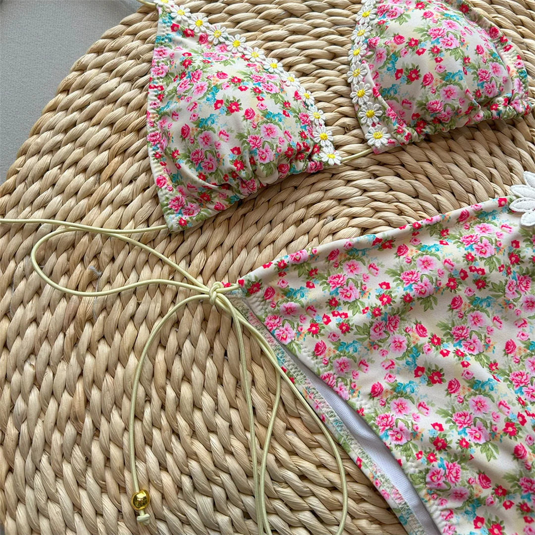 Flower Printed Floral Bikini Women Swimwear Female Swimsuit Two-pieces Bikini set Scrunch Butt Bather Bathing Suit Swim V6888