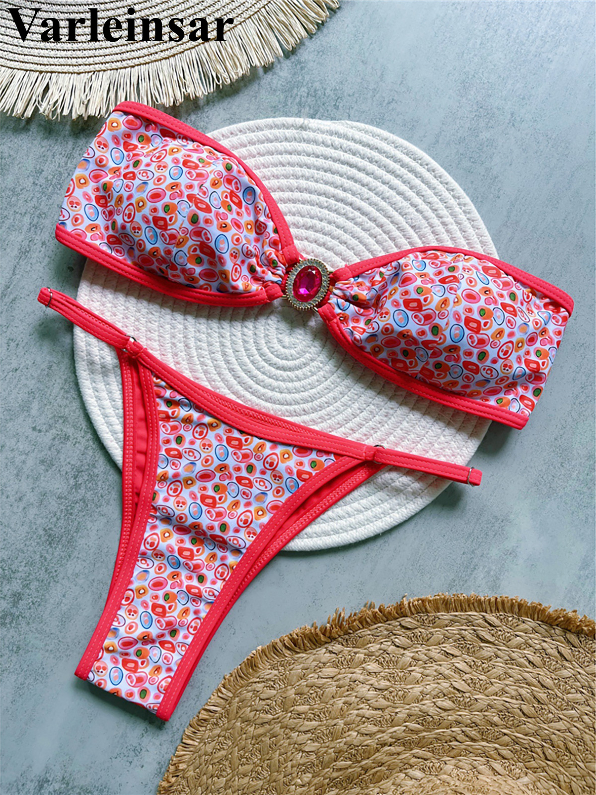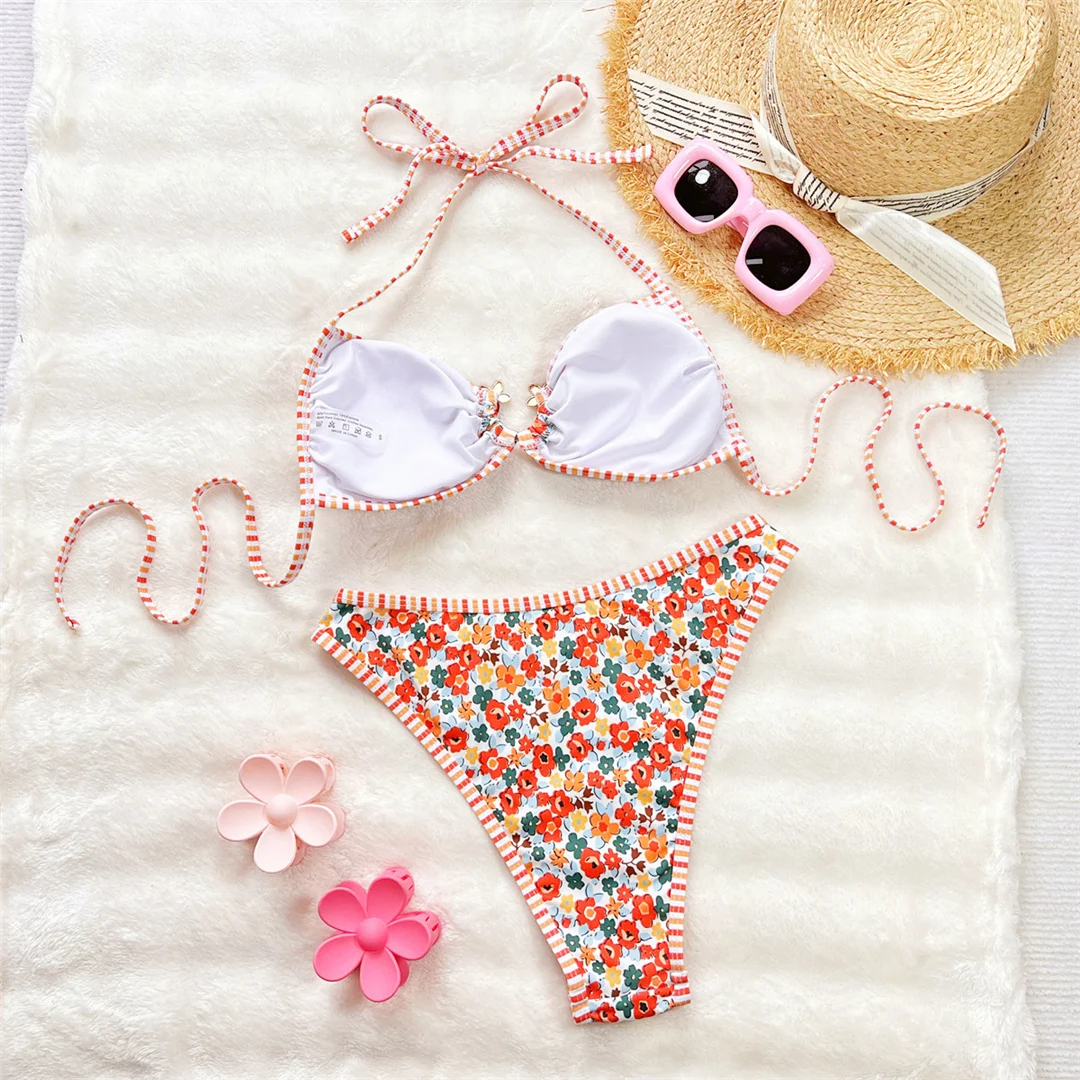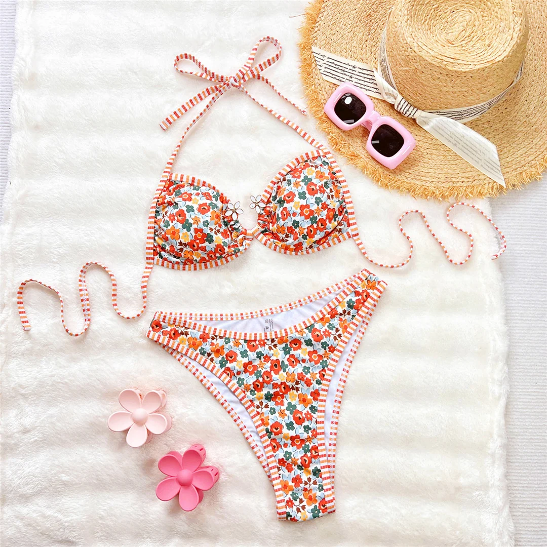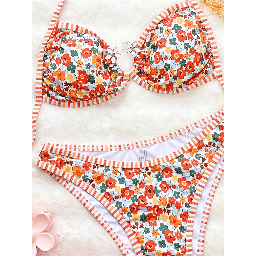 Flower Printed Floral Halter Bikini Women Swimwear Female Swimsuit Two-pieces Bikini set Padded Bather Bathing Suit Swim V6927