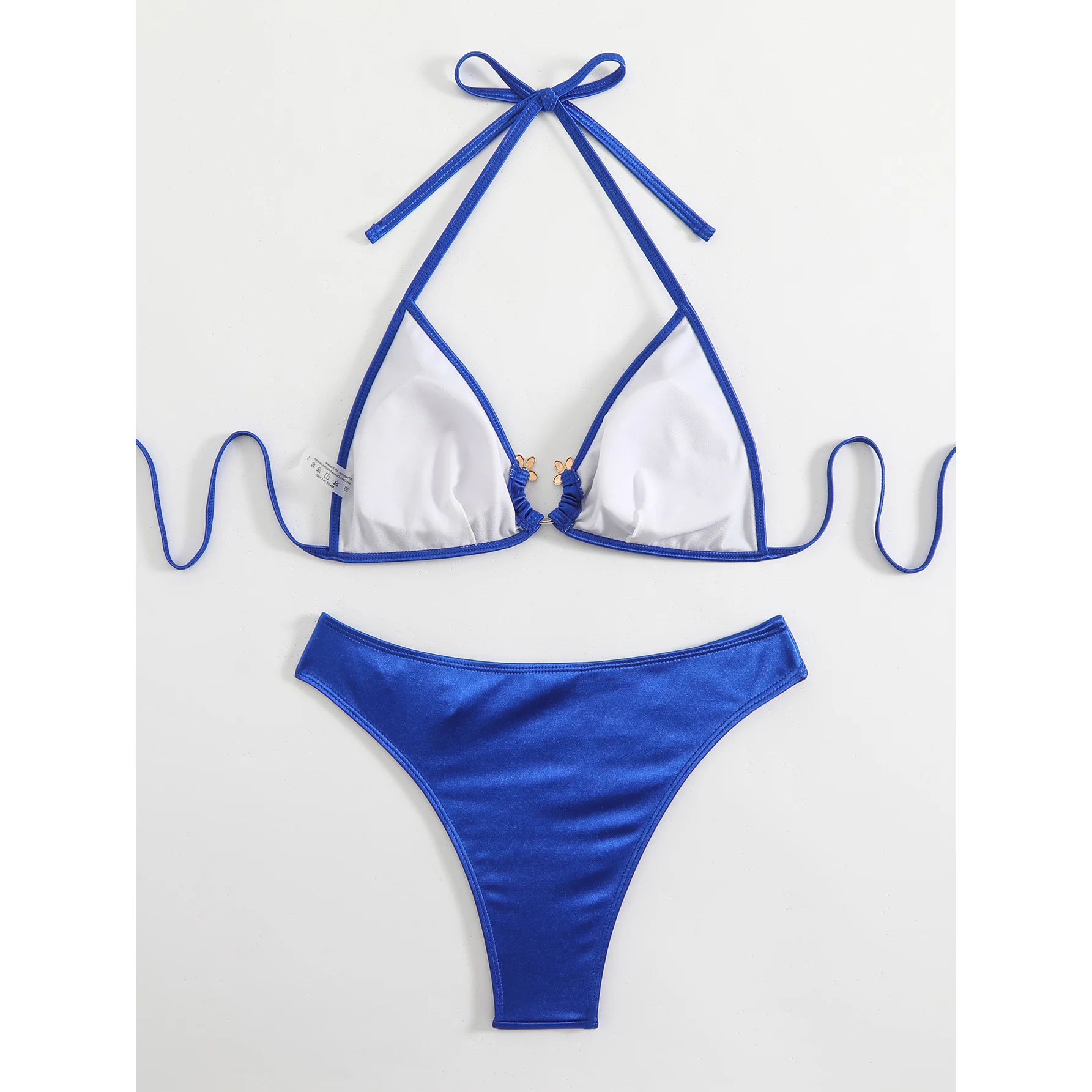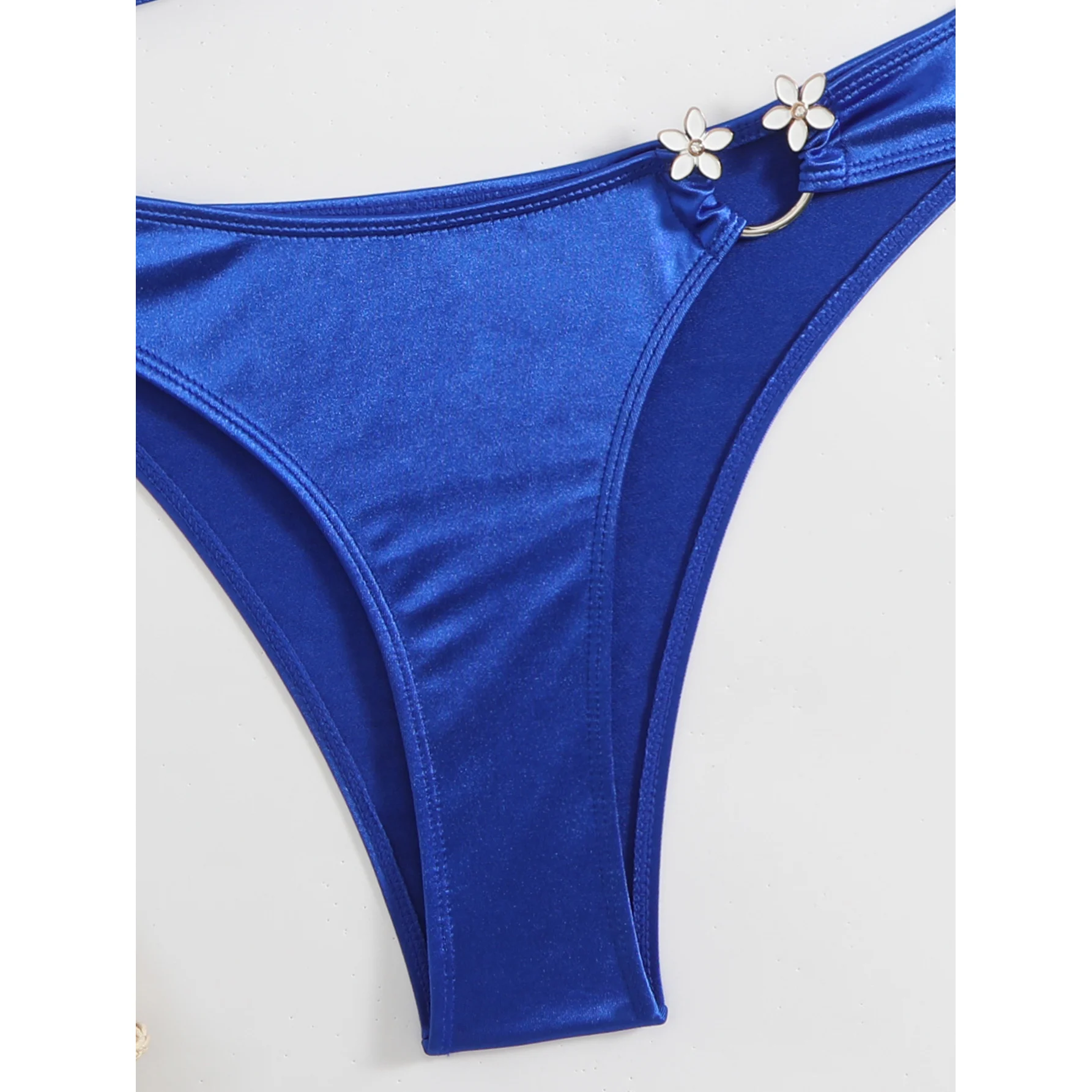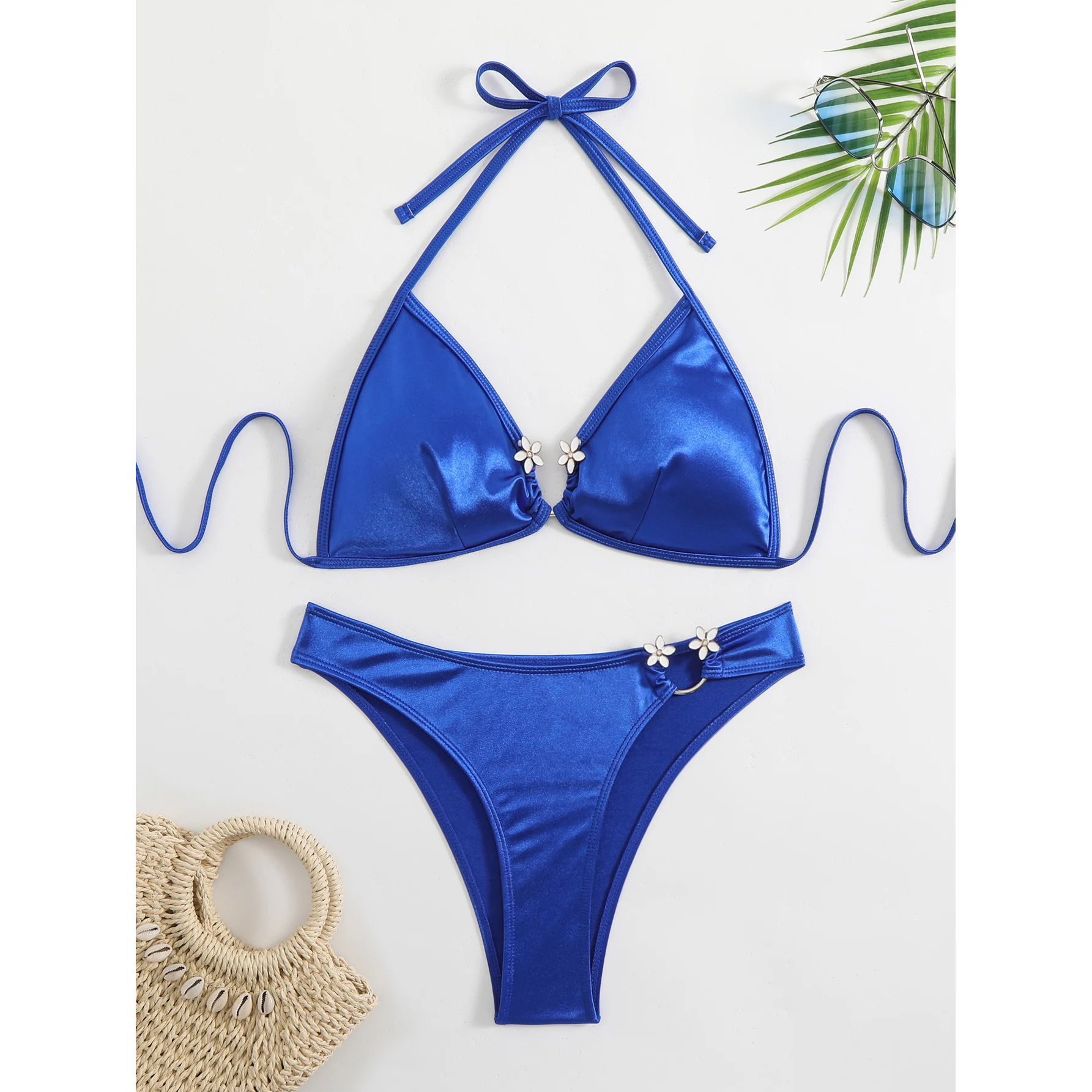 Flowers Halter Bikini Women Swimwear Female Swimsuit Two-pieces Bikini set High Cut Leg Brazilian Bather Bathing Suit Swim V7088