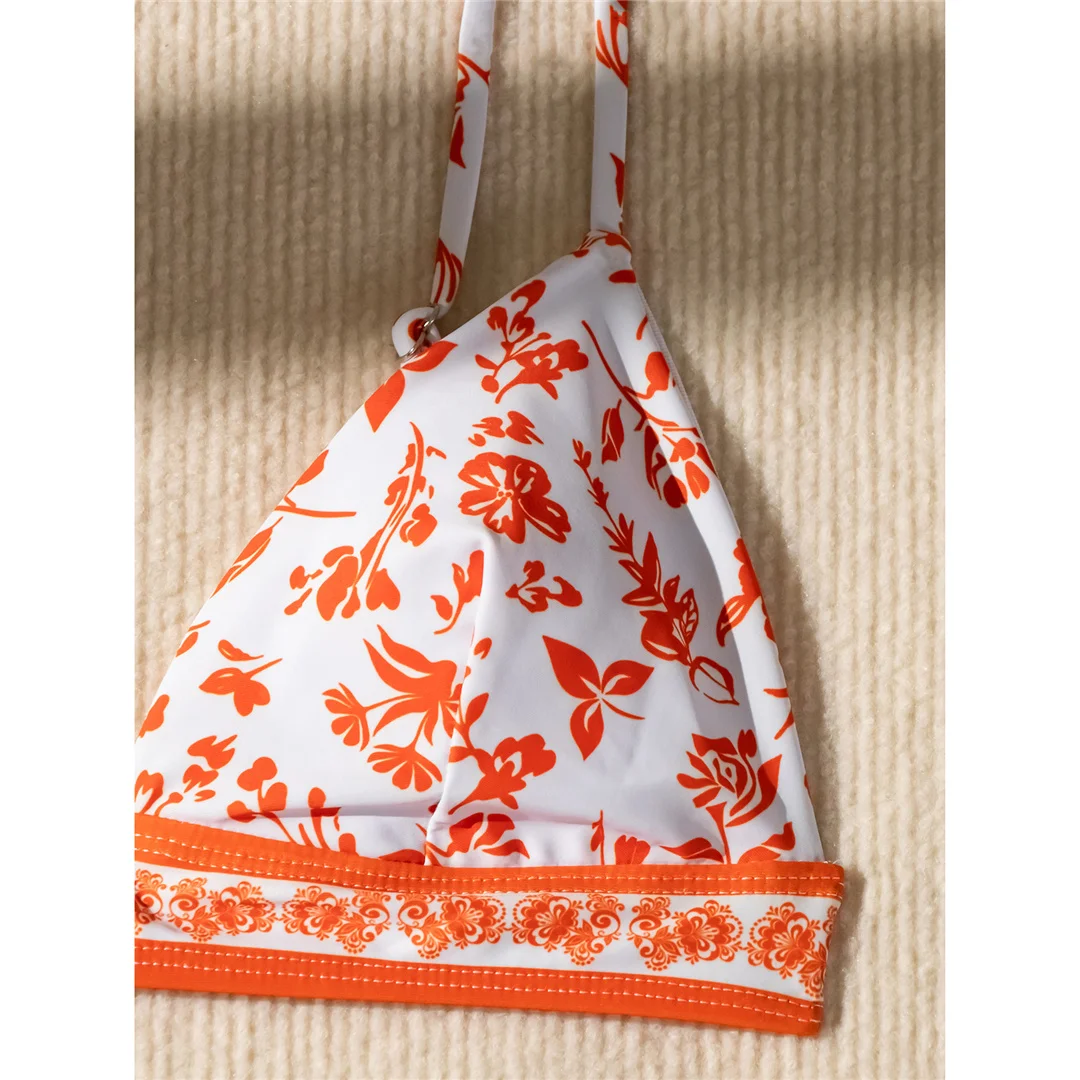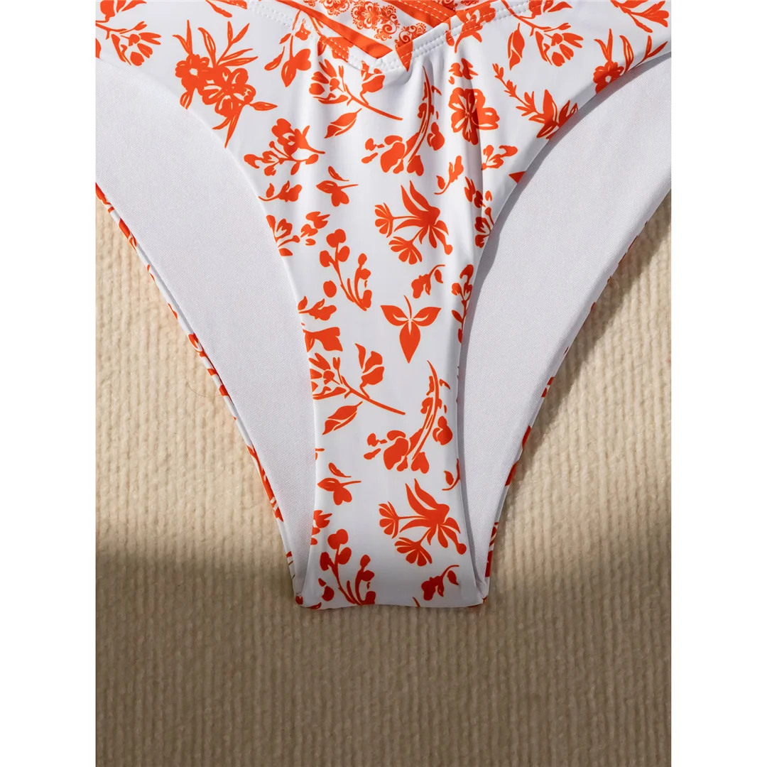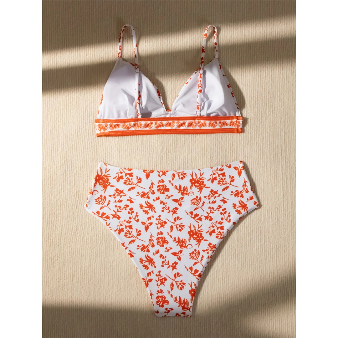 Flowers Printed High Cut Mid Waist Bikini Female Swimsuit Women Swimwear Two-pieces Bikini set Bather Bathing Suit Swim V5338
