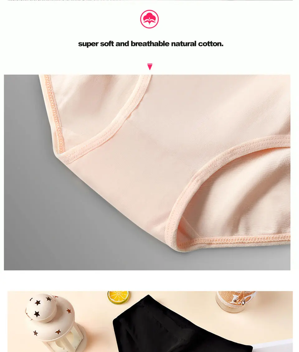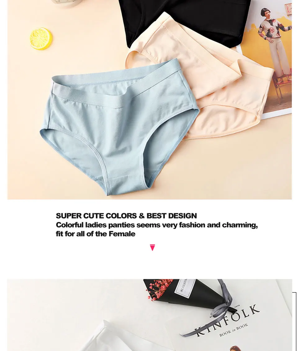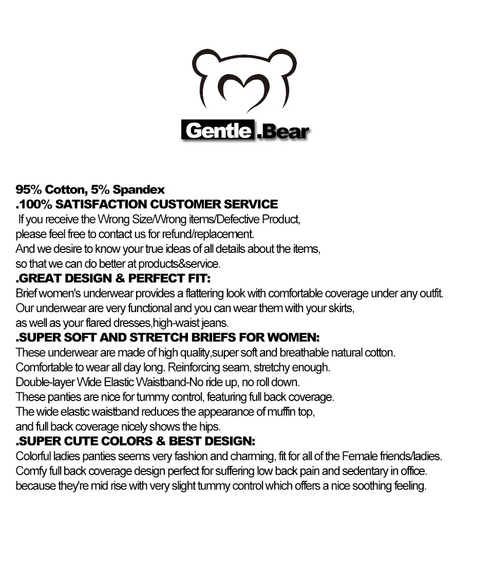Gentle.Bear Summer Cotton Underwear Women Mid Waist Full Coverage Breathable Ladies Briefs Hipster Panties for Women