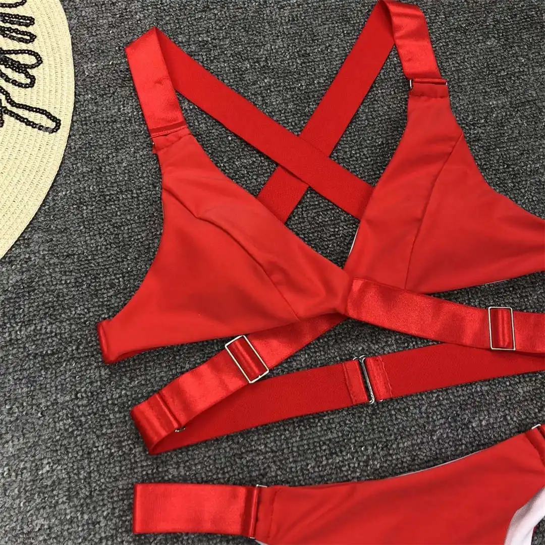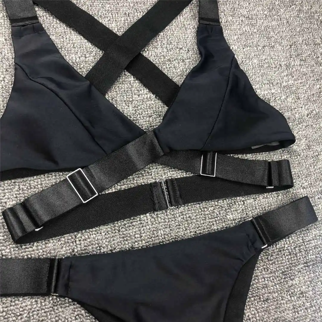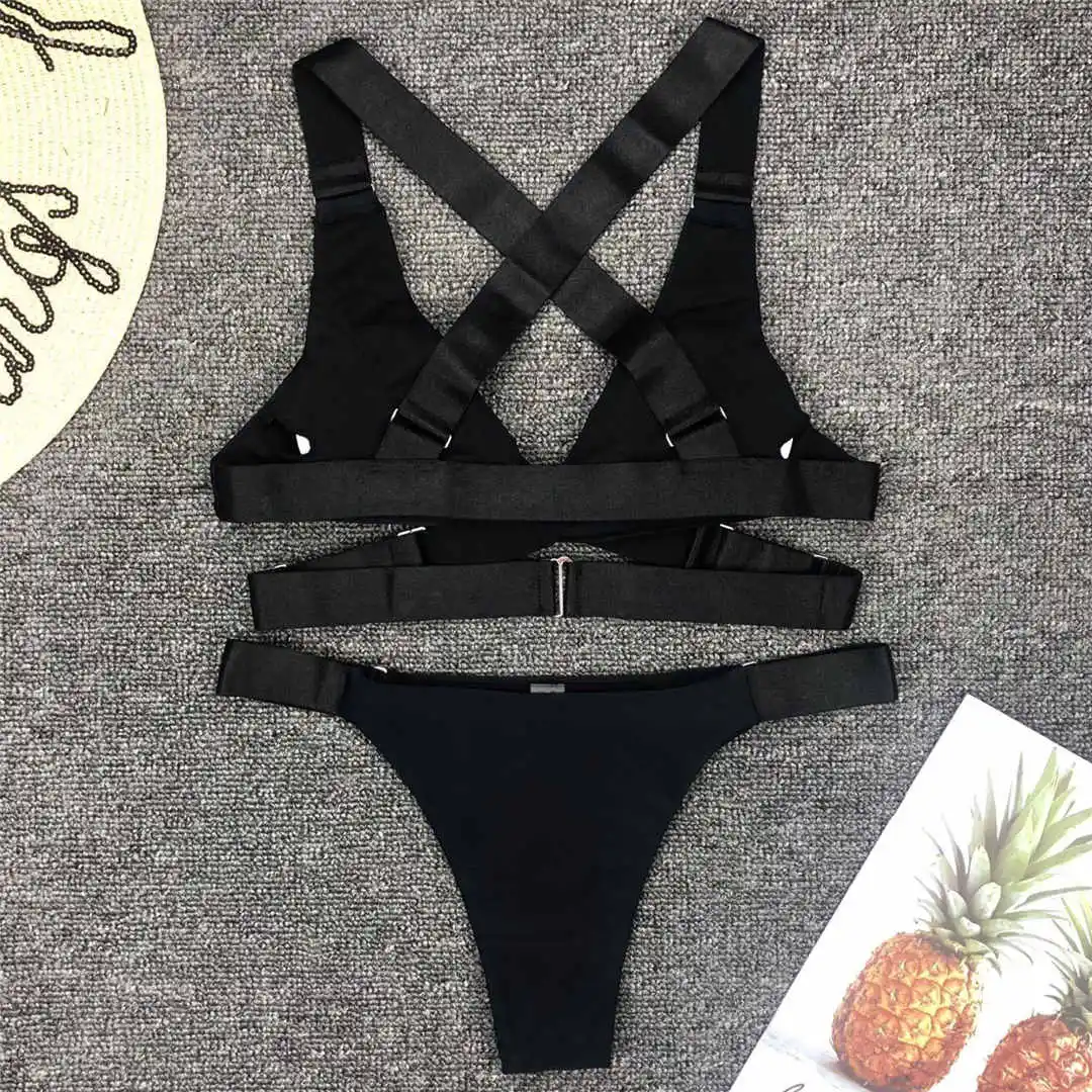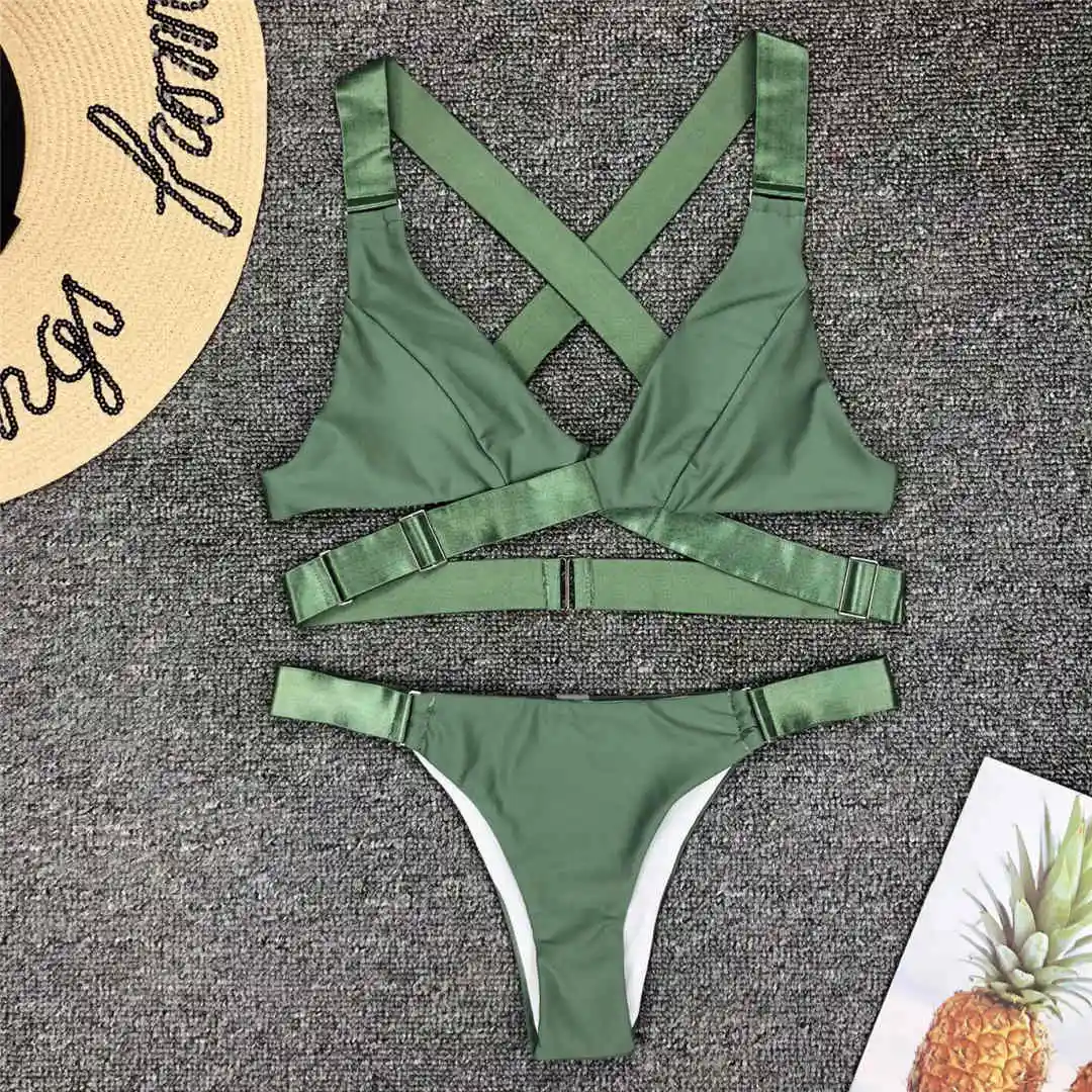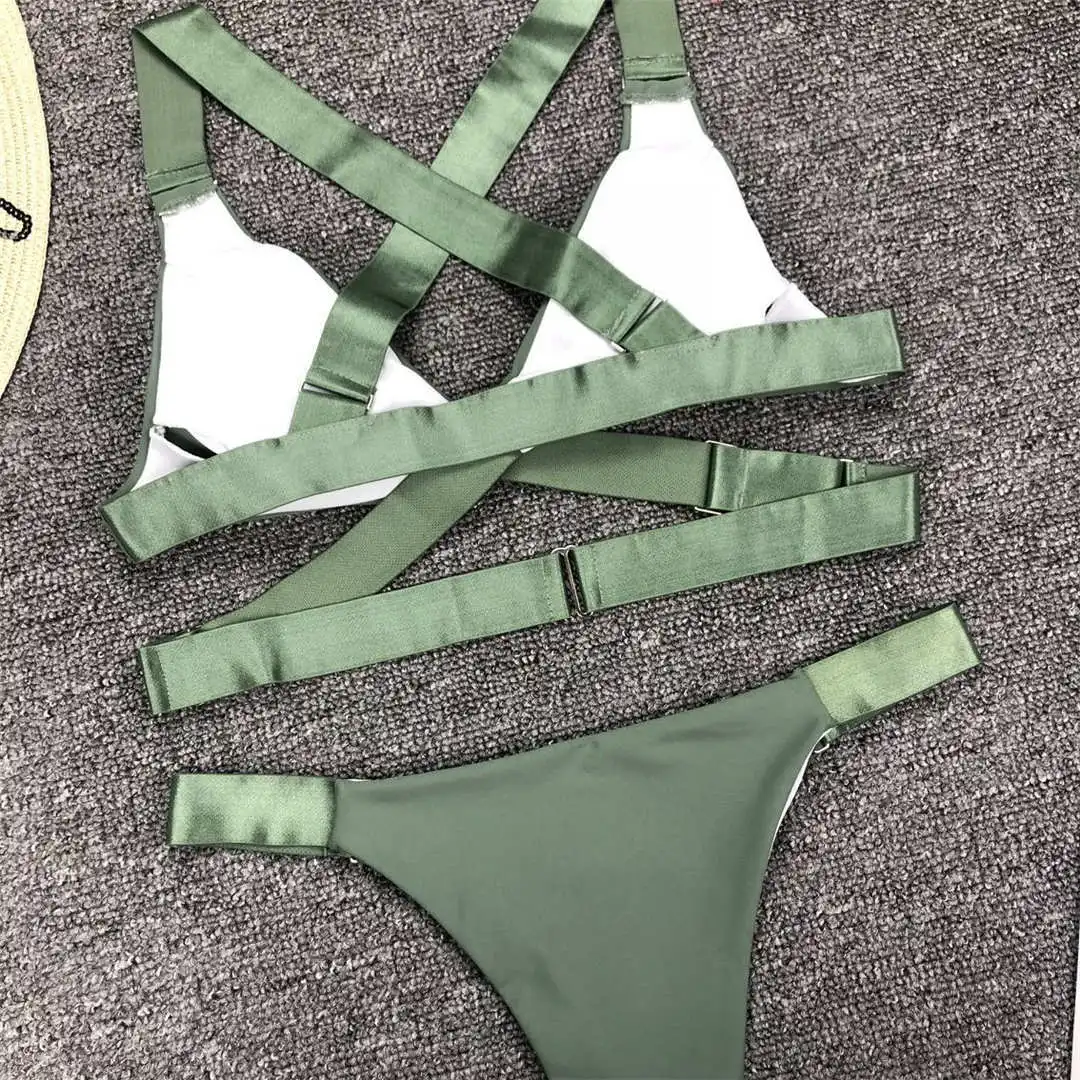 Green Bandage Cross Back Bikini 2024 Sexy Swimsuit Female Swimwear Women Two-piece Bikini set Black Bather Bathing Suit V1108G