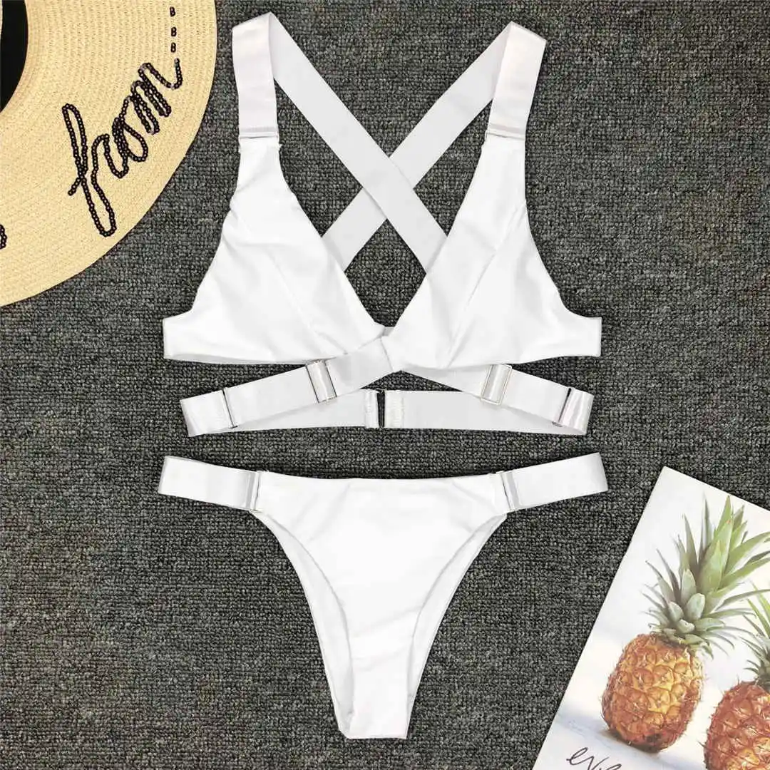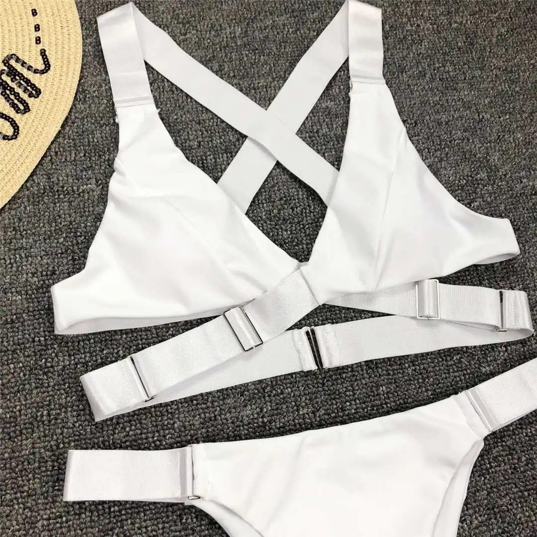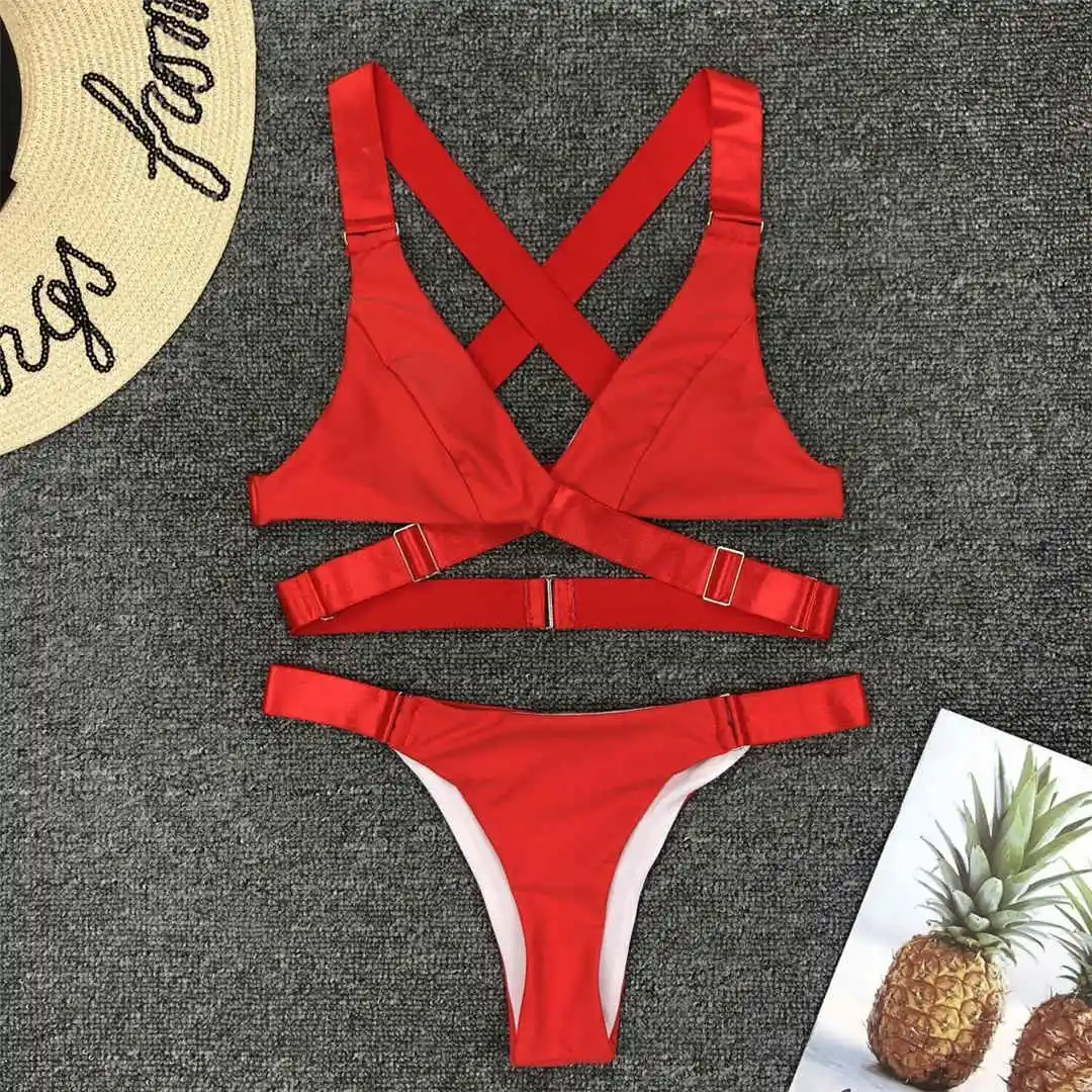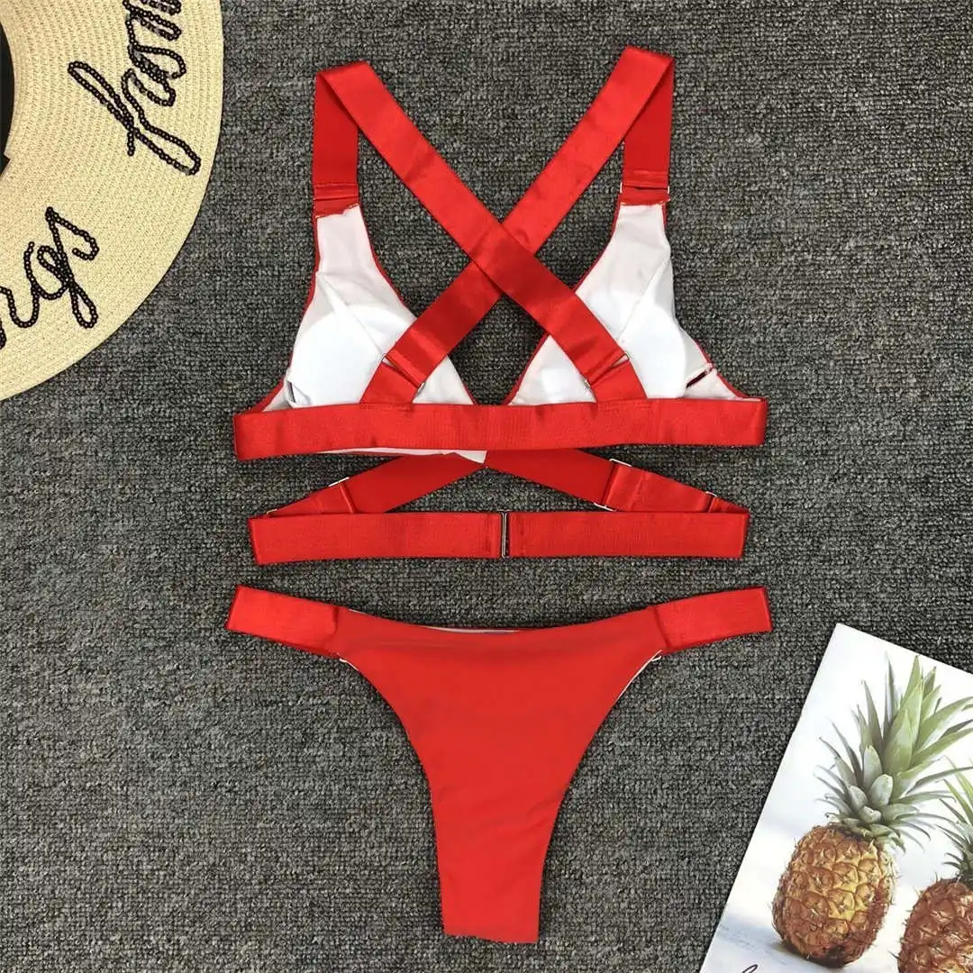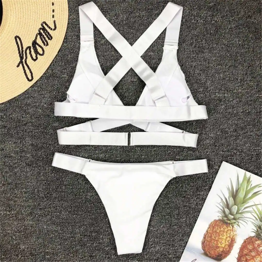 Green Bandage Cross Back Bikini 2024 Sexy Swimsuit Female Swimwear Women Two-piece Bikini set Black Bather Bathing Suit V1108G
