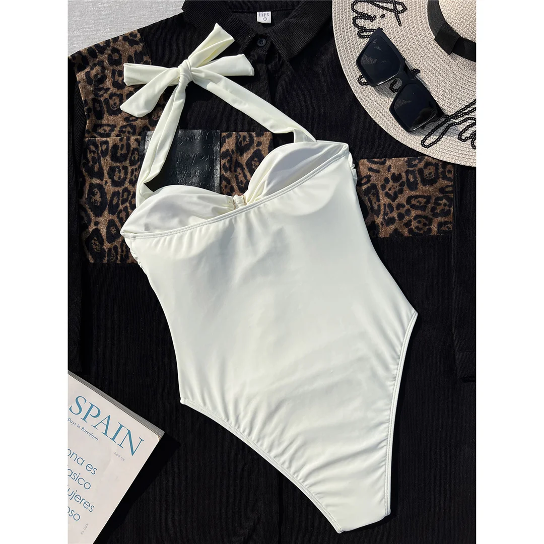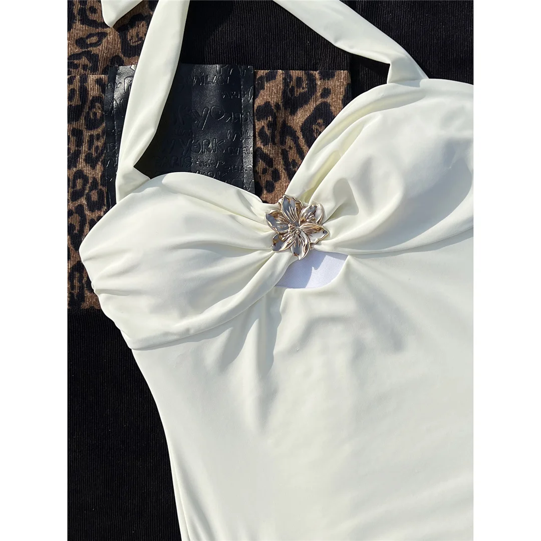 Halter Metal Flower High Cut Backless One Piece Swimsuit Women Swimwear Female Monokini Padded Bather Bathing Suit Swim V6401