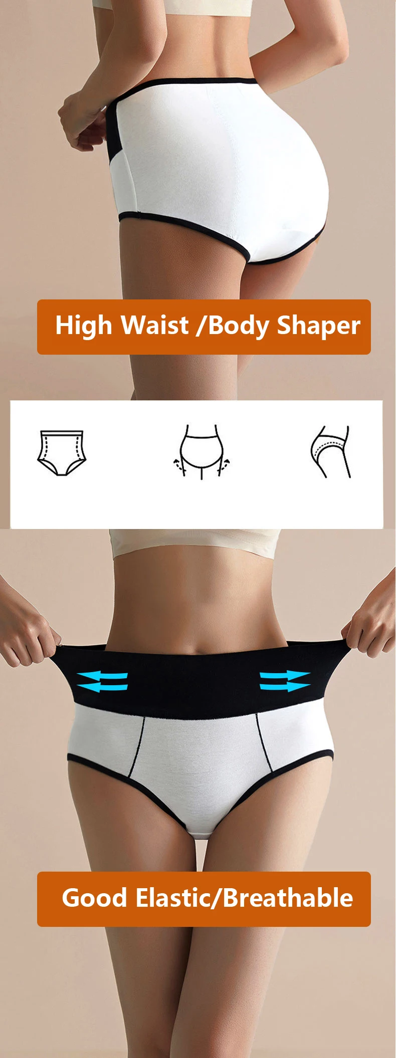 High Waist 4Pcs Plus Size Women Panties Leak Proof Menstrual Pants Widen Period Underwear Physiological Cotton Female Briefs
