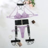 Hot Women’s Sexy Lingerie Mesh See-through Fashion Clash Of Colours Breathable Gathered Bra Garter Belt Erotic Three-piece Set