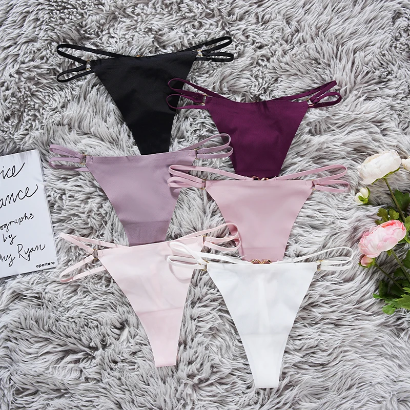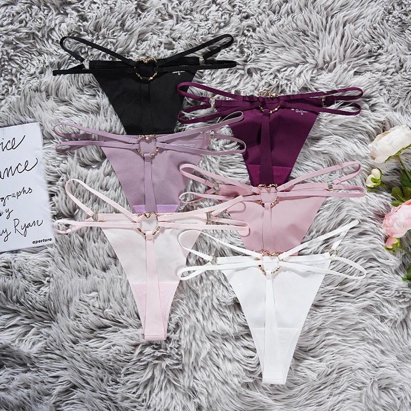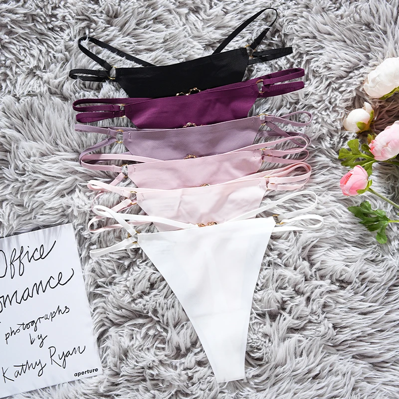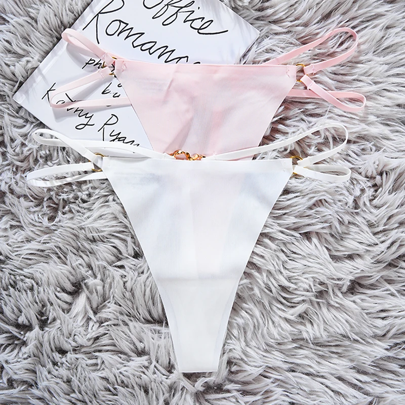Ice Silk Girls Briefs Iron Ring Sexy Panties Women G String Underwear Thong Seamless Underpants Yoga Lingerie Plus Size S-XL