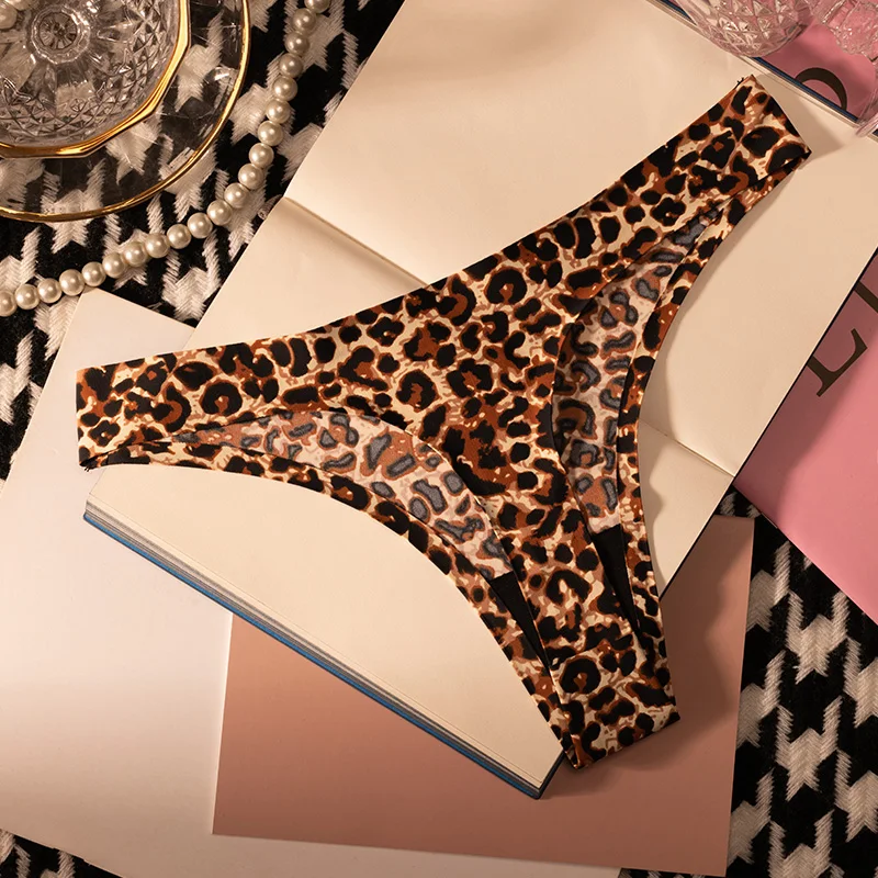 Ice Silk Leopard Women Panties Sexy G String Thong Seamless Underwear T Back Candy Color Girls Briefs Underpants Plus Size M-XXL