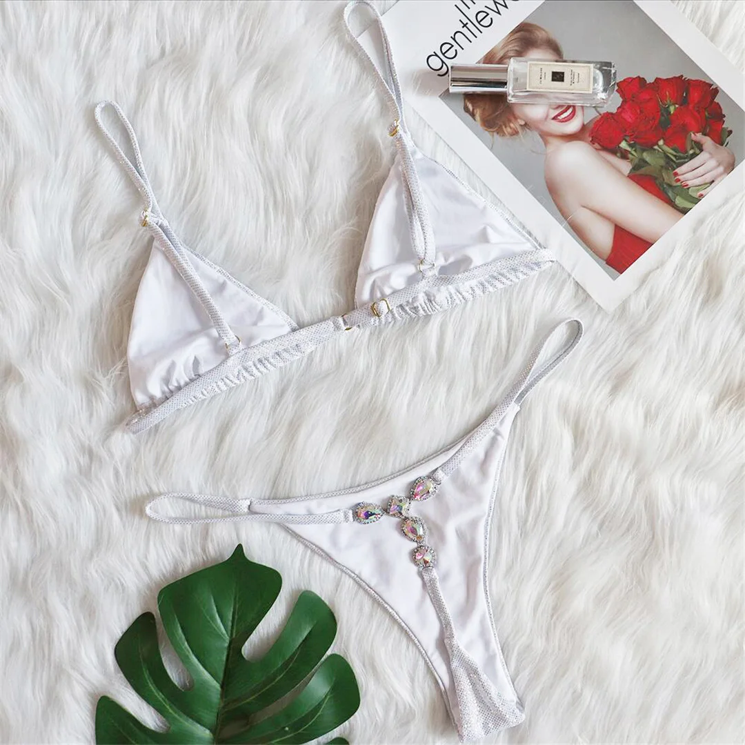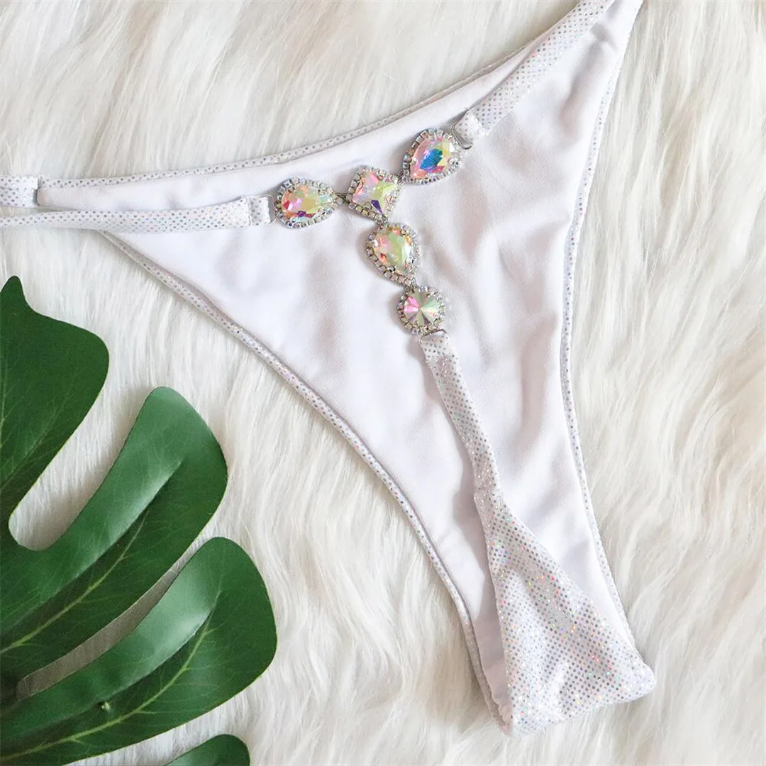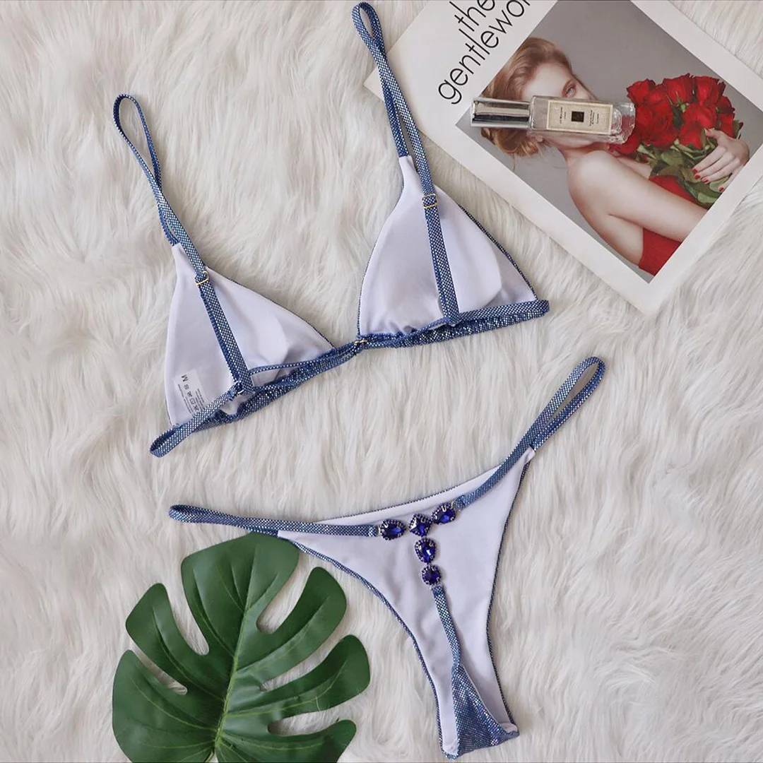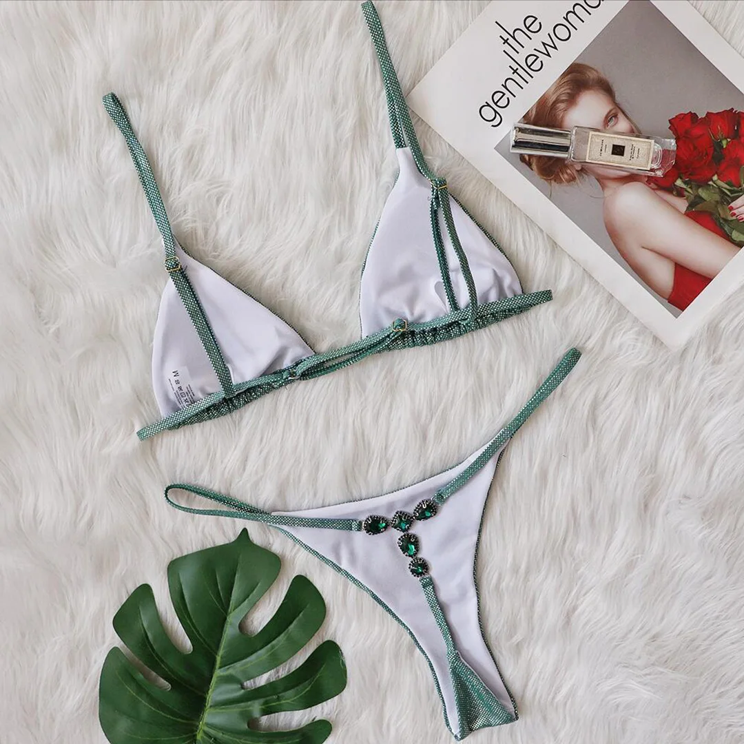 Jewelled Rhinestone Mini Micro Thongs Bikini Women Swimwear Female Swimsuit Two-pieces Bikini set Bather Bathing Suit Swim V4956