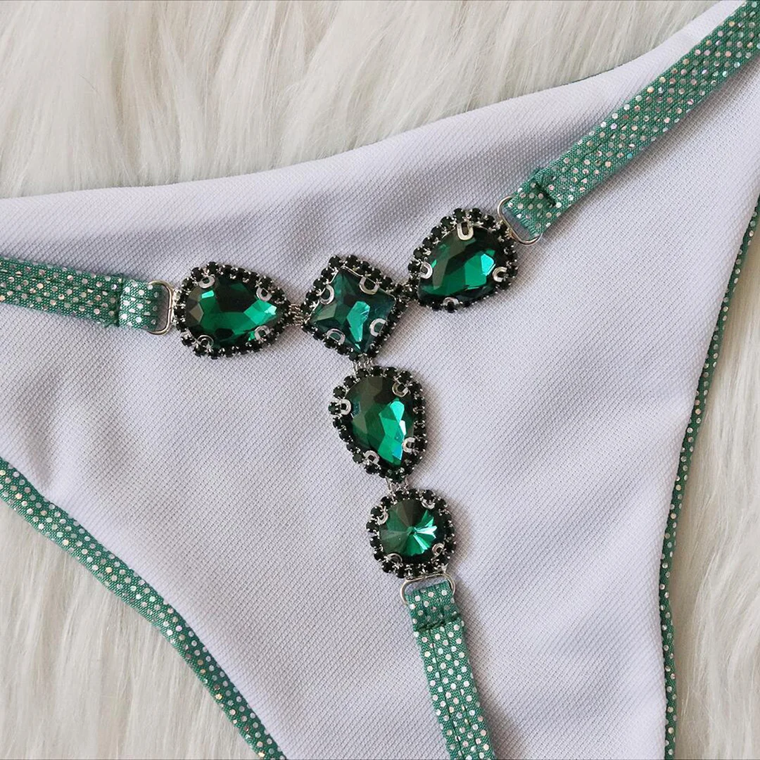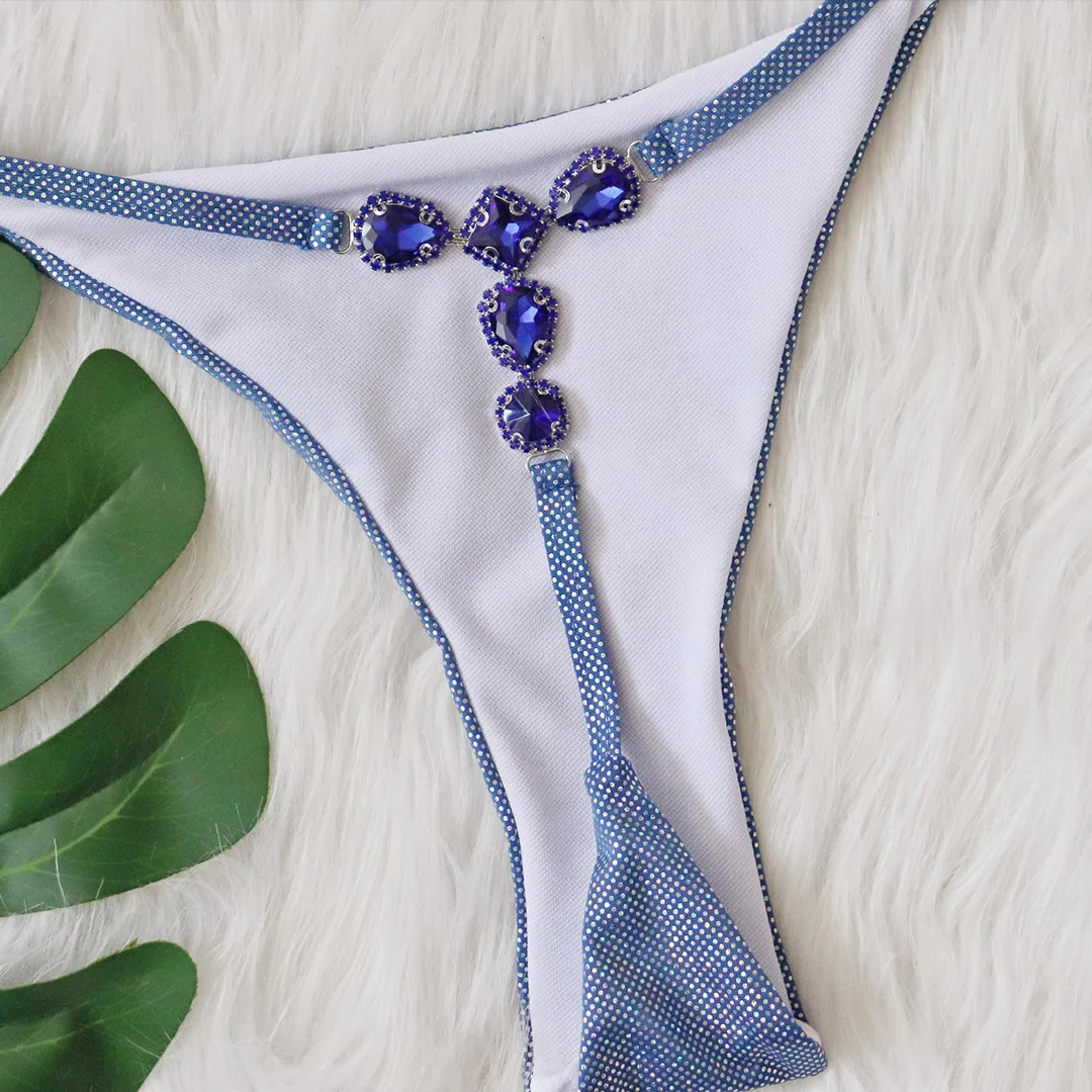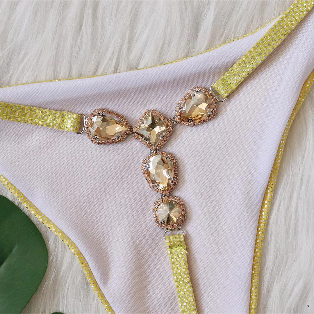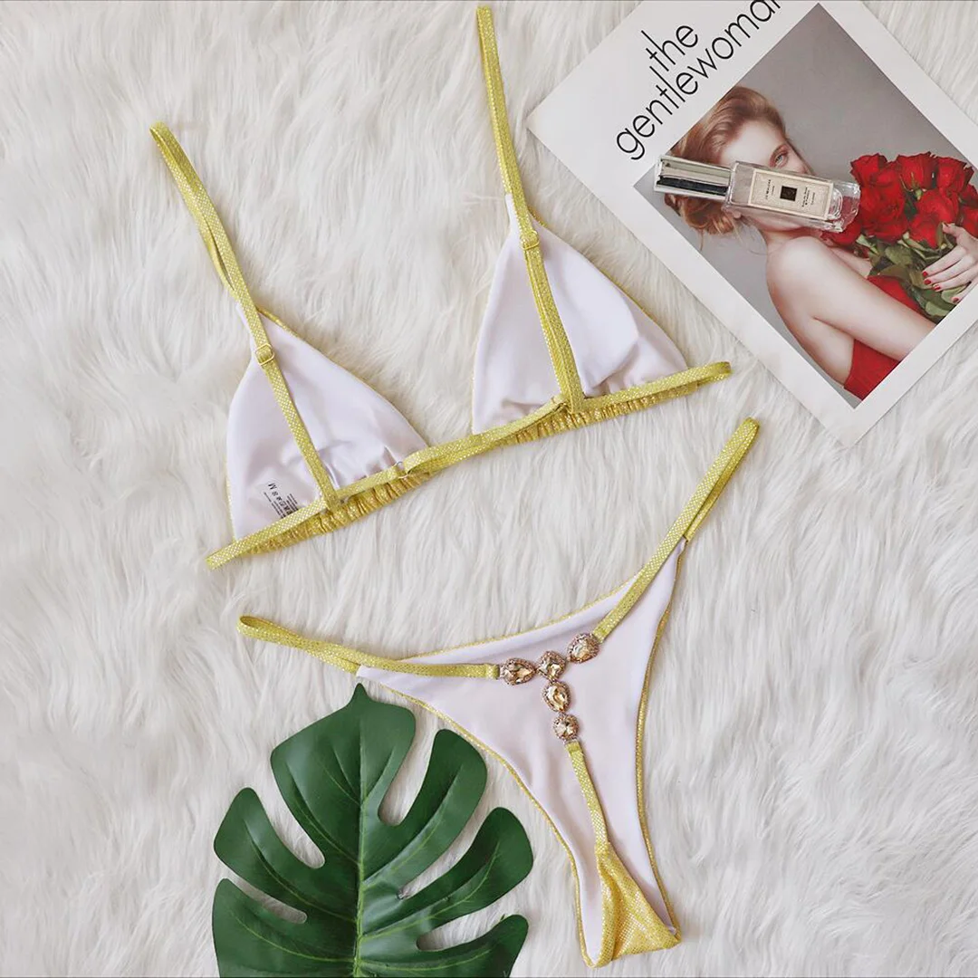 Jewelled Rhinestone Mini Micro Thongs Bikini Women Swimwear Female Swimsuit Two-pieces Bikini set Bather Bathing Suit Swim V4956