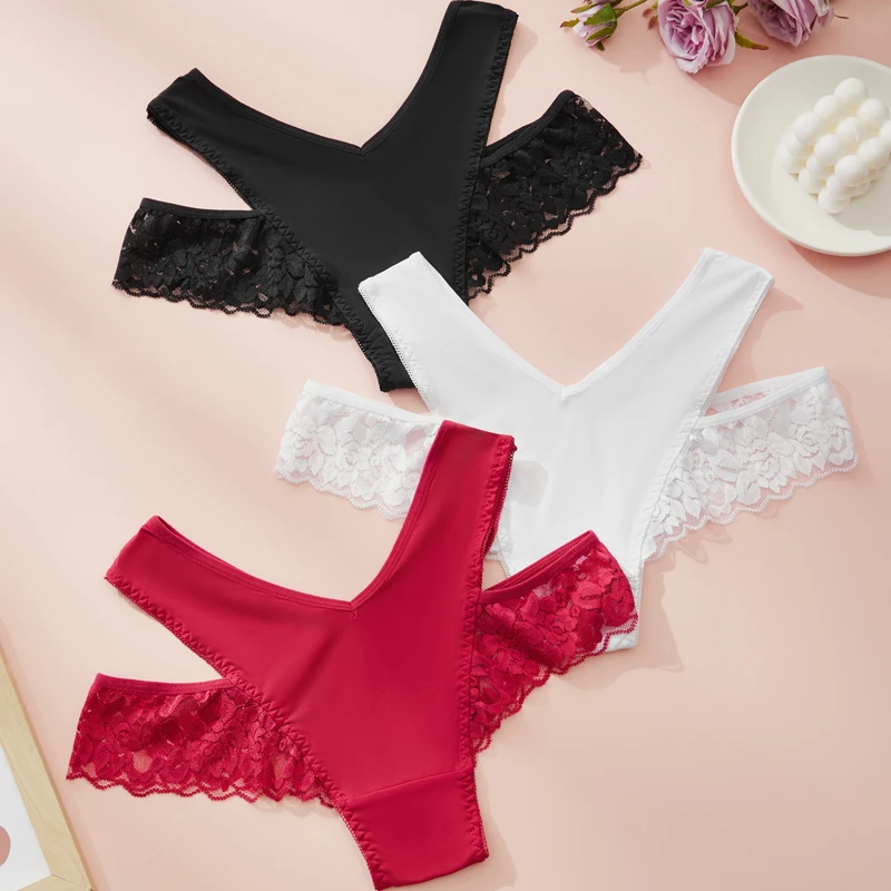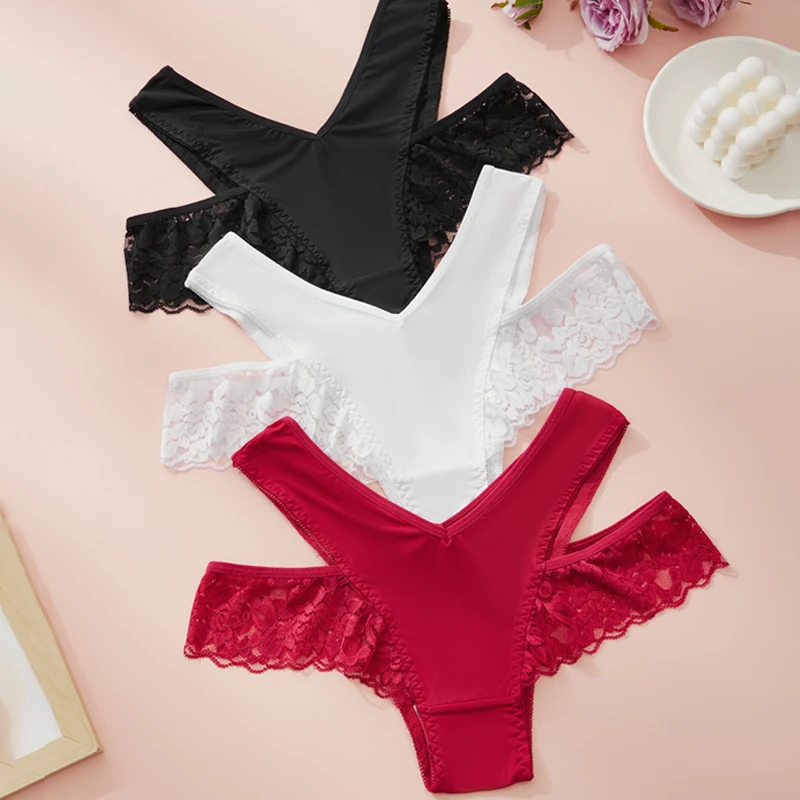 Lace underwear for women sexy hollow out new style pure cotton crotch breathable and comfortable for women ice silk triangle