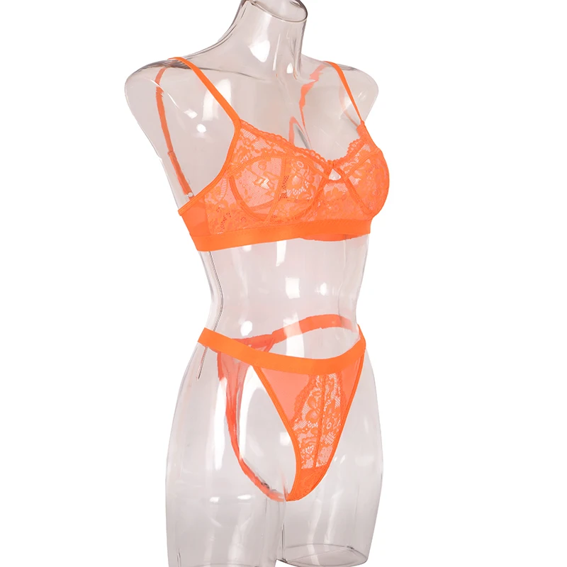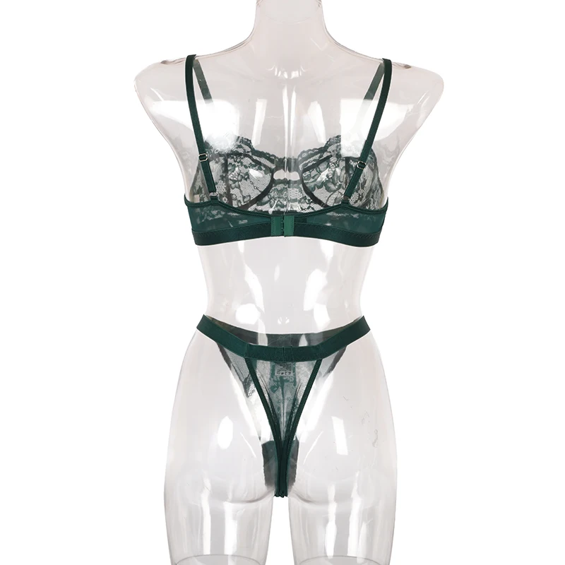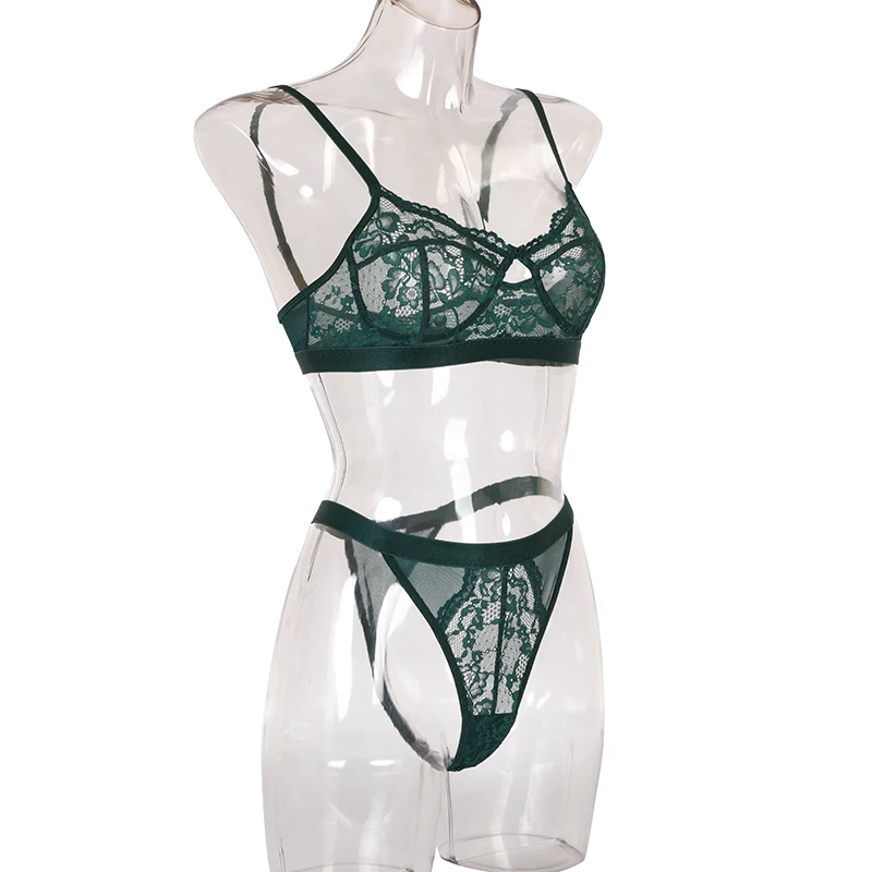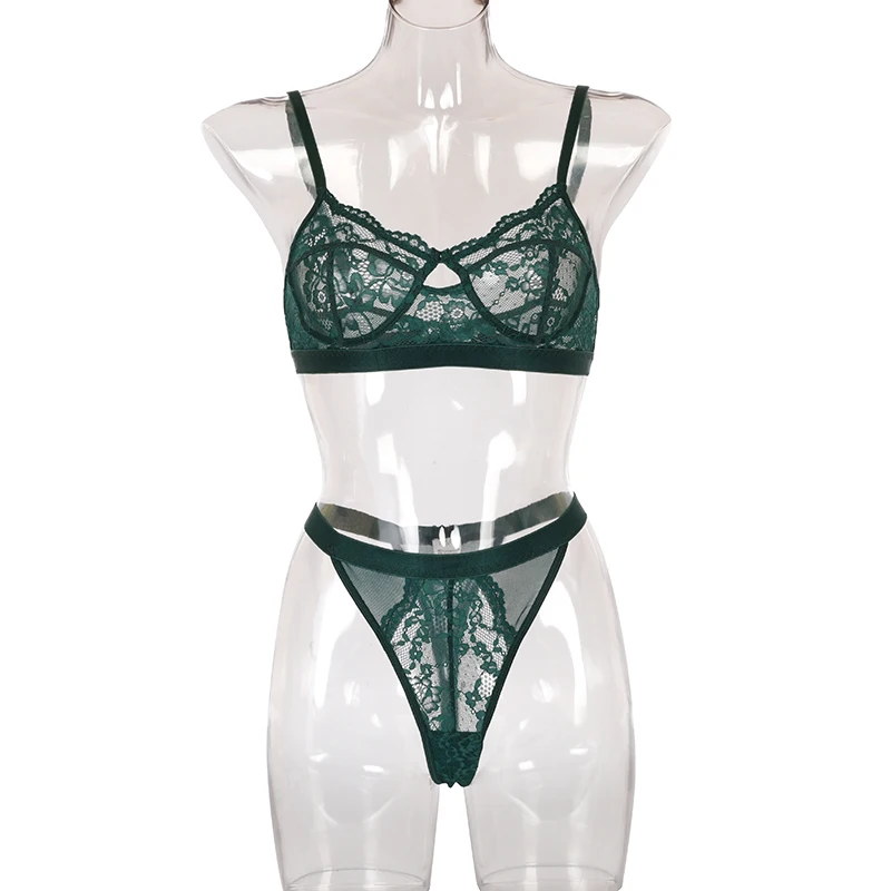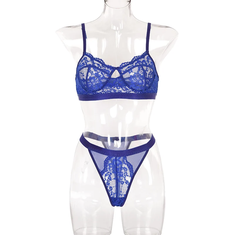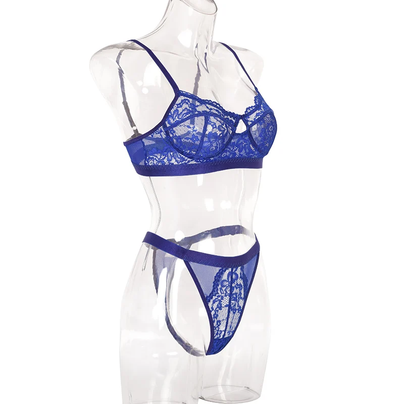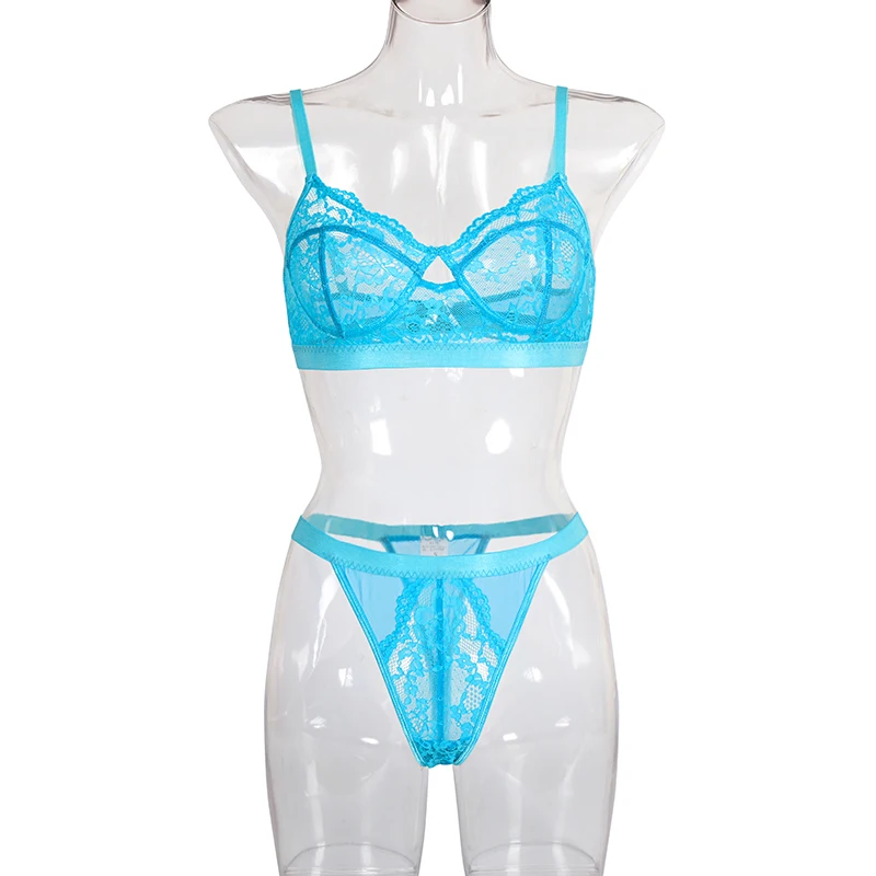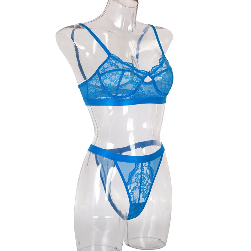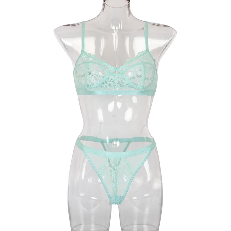 Ladies Two Piece Set Luxury French Lingerie Women Nice Sexy Seamless Underwear Mesh See Through Thong and Bra Porn Sui