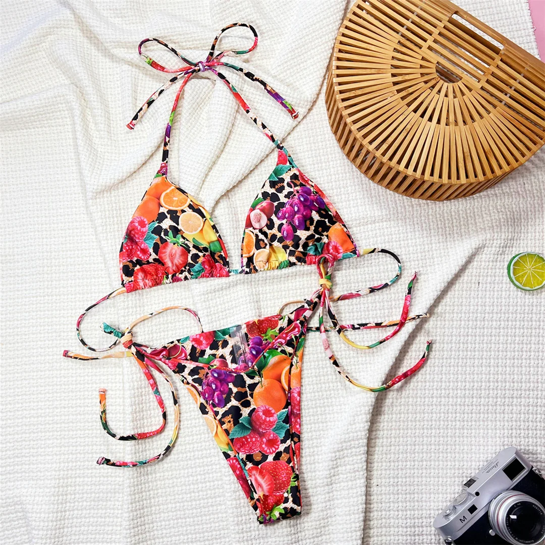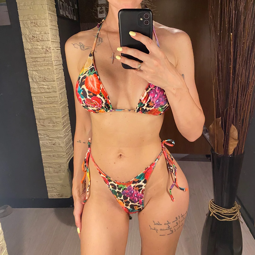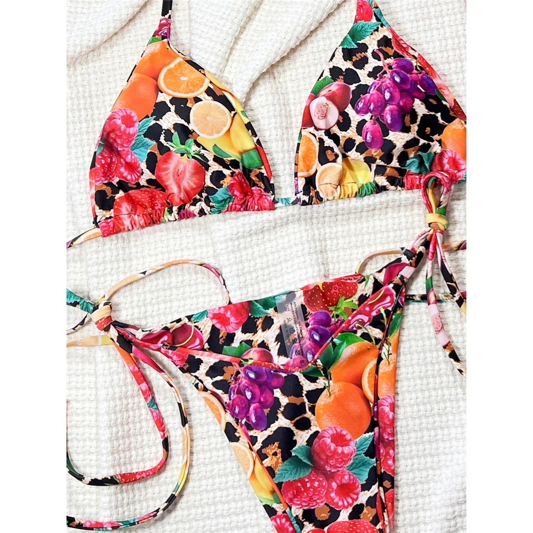 Leopard Fruit Halter Bikini Female Swimsuit Women Swimwear Two-pieces Bikini set Strappy Padded Bather Bathing Suit Swim V6808