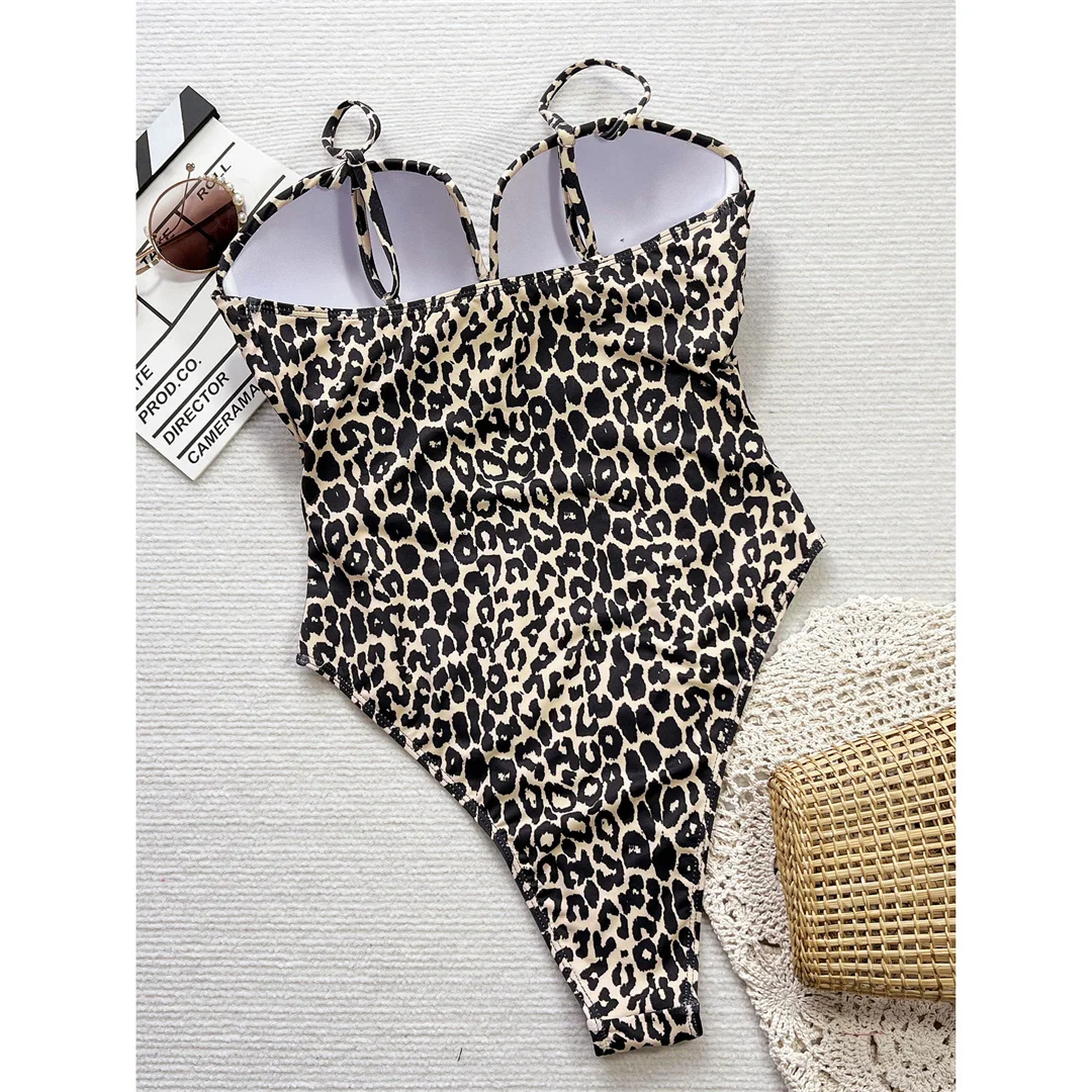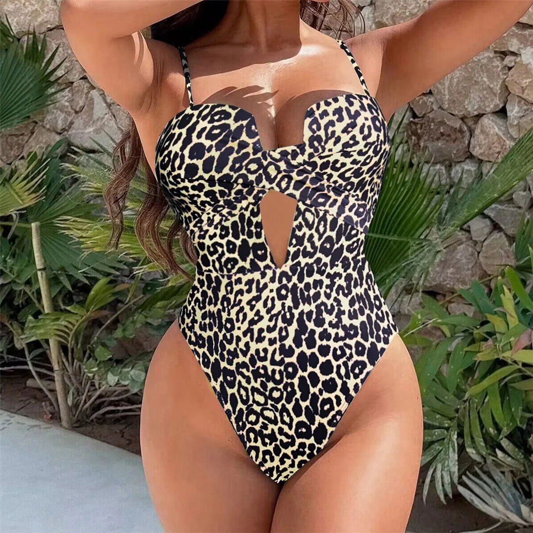 Leopard Printed Cut Out Underwired Women Swimwear One Piece Swimsuit Female Monokini High Leg Cut Bather Bathing Suit Swim V5957