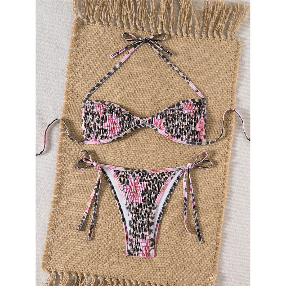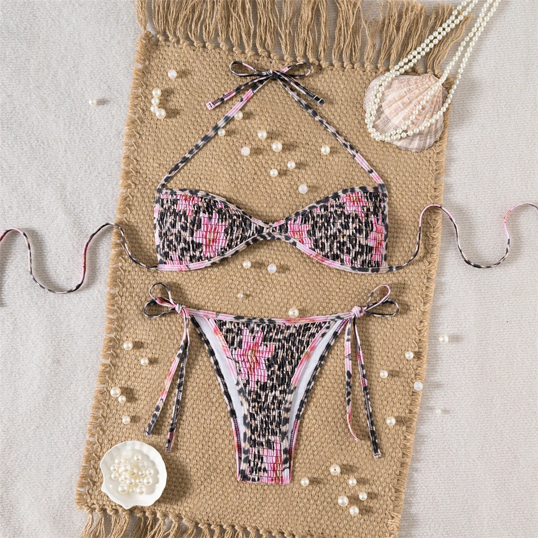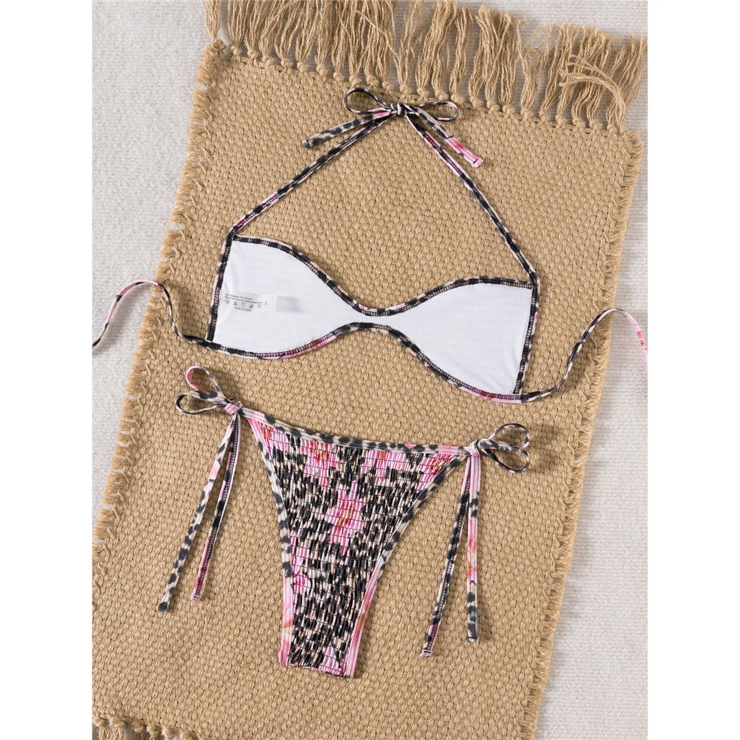 Leopard Printed Halter High Leg Cut Bikini Women Swimwear Female Swimsuit Two-pieces Bikini set Bather Bathing Suit Swim V6812