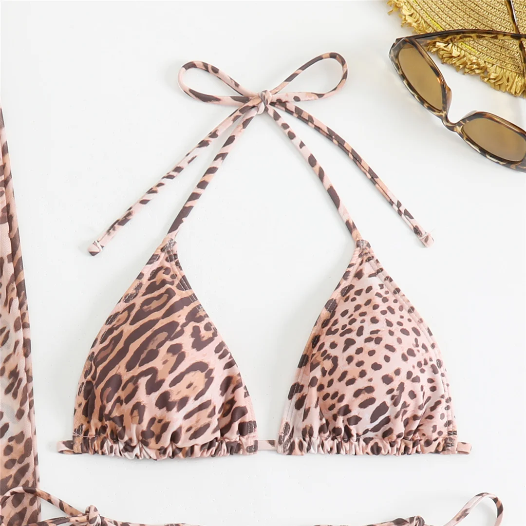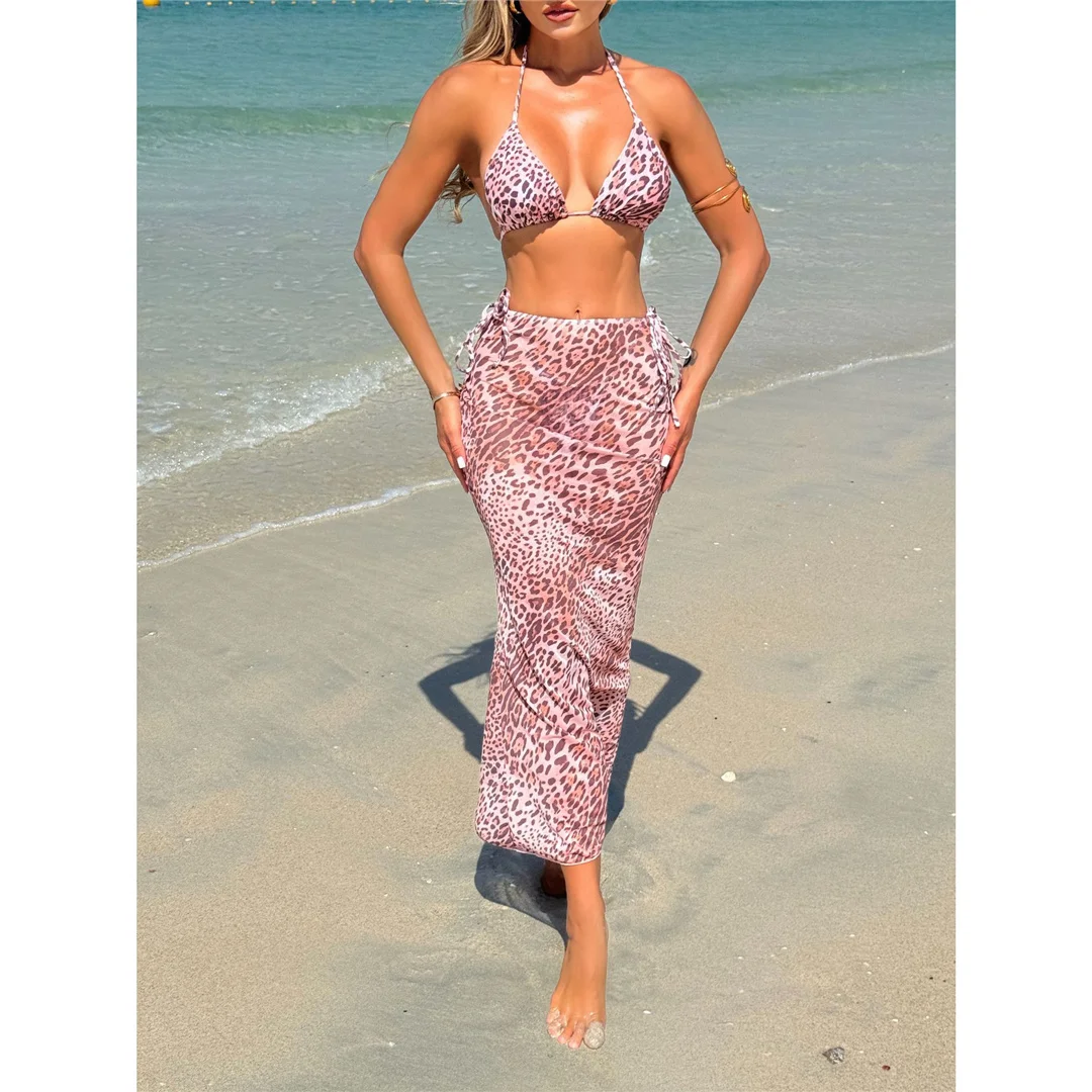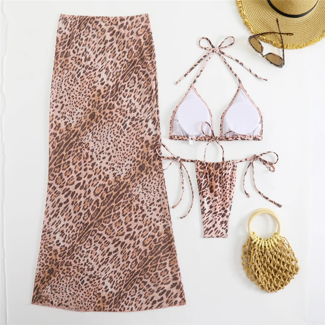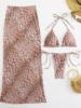 Leopard With Skirt Halter Bikini Women Swimwear Female Swimsuit Three-pieces Bikini set Strappy Bather Bathing Suit Swim V7014