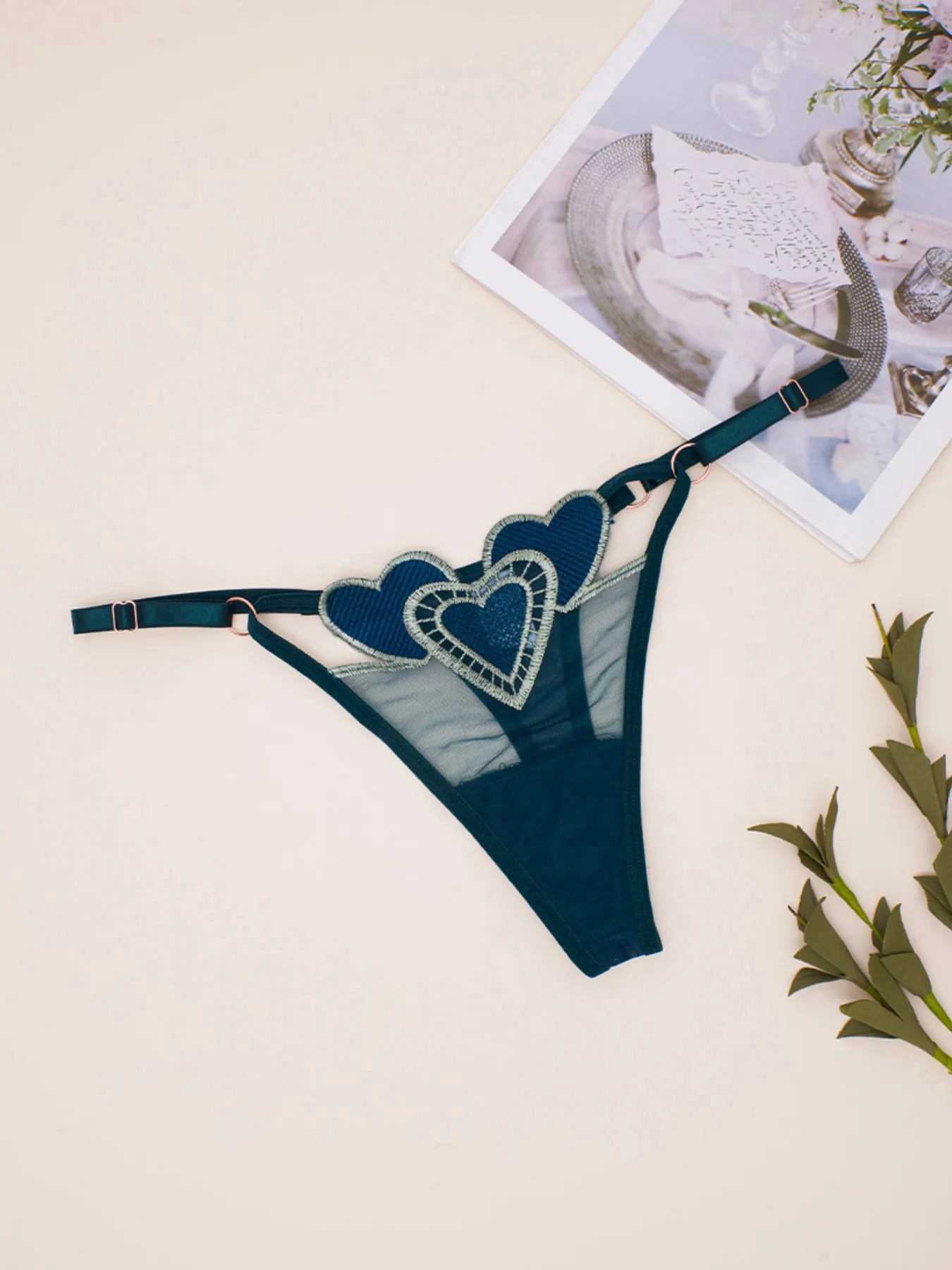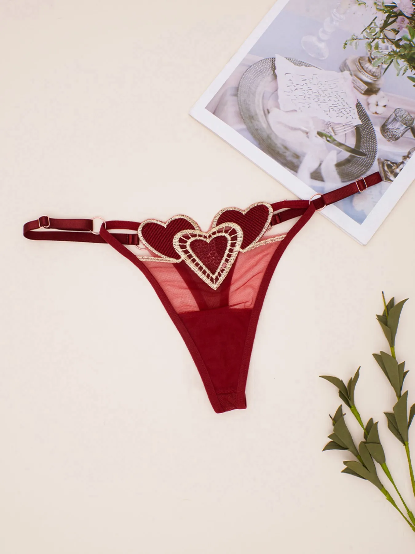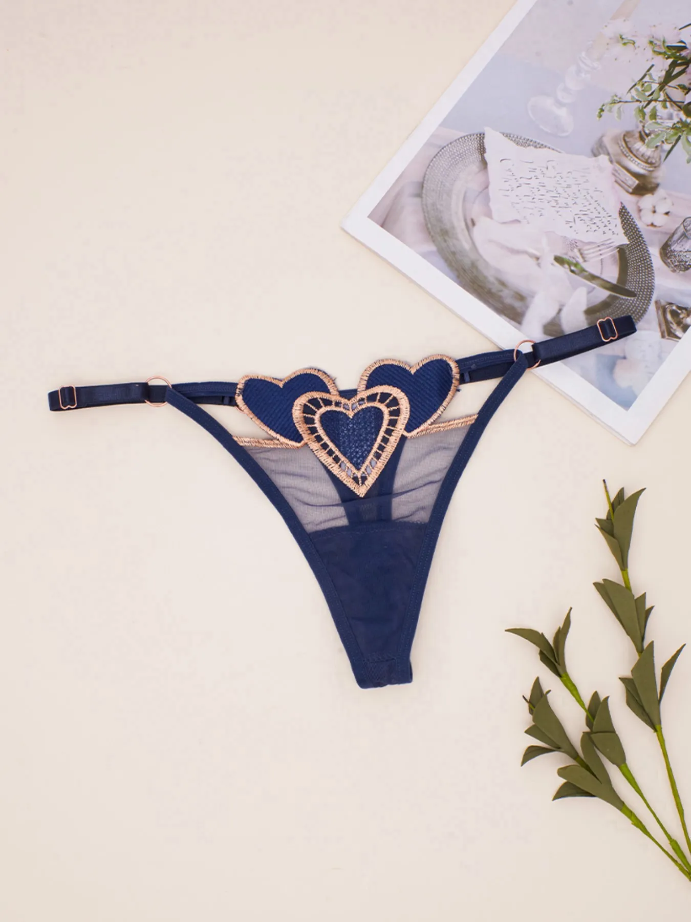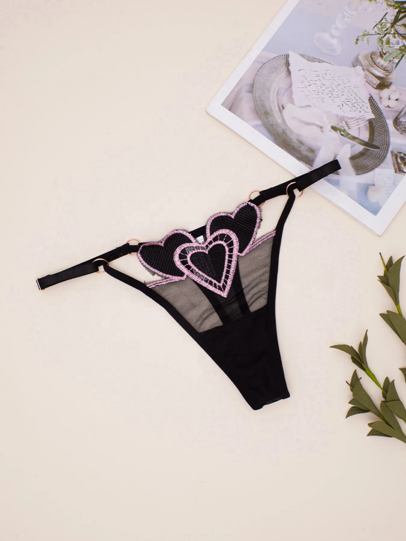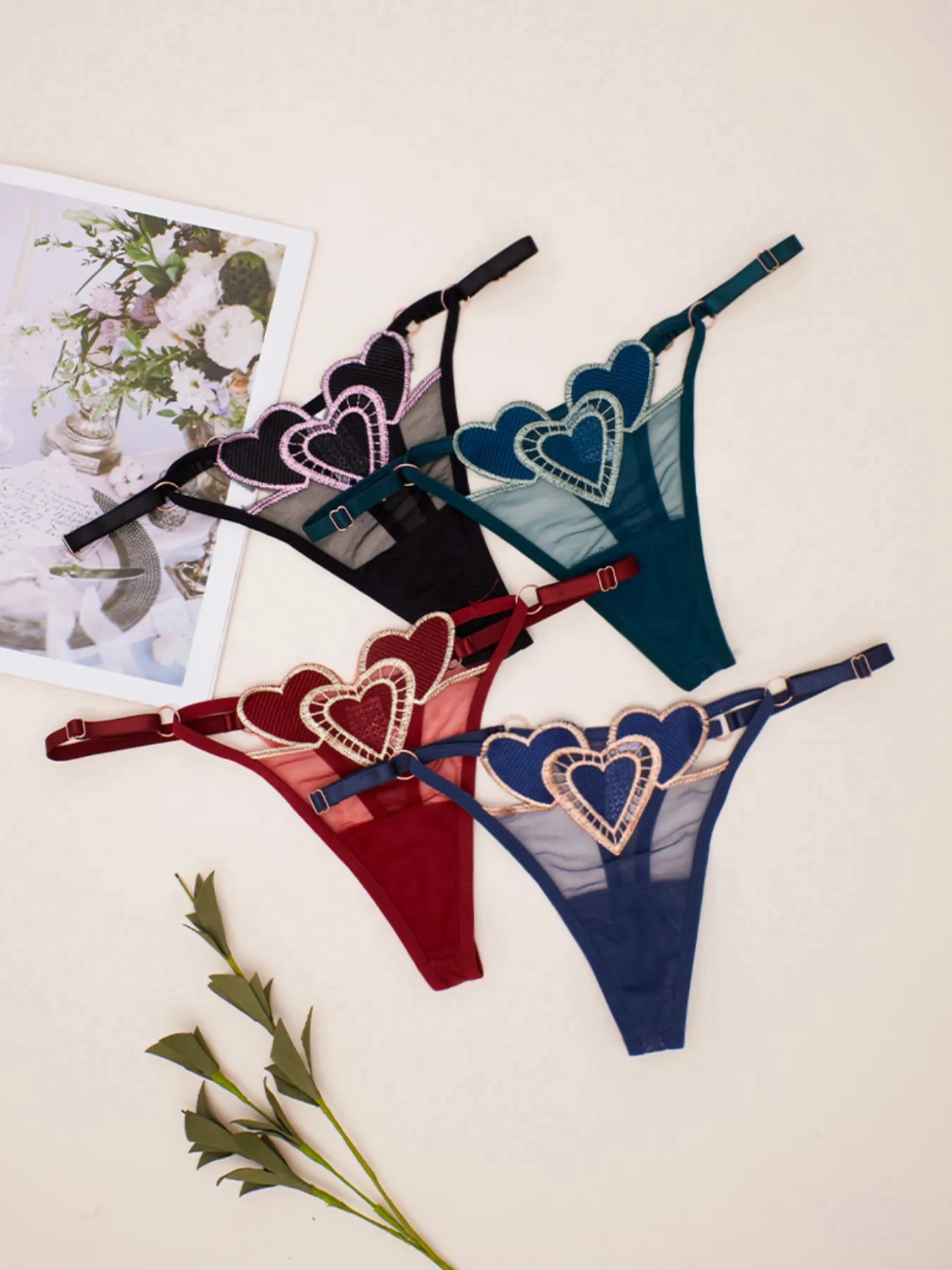 Lingerie Lace Embroidery Panties Sexy Temptation G-string Low Waisted Women Underwear Heart Printed Snug Breathable Hollow Thong