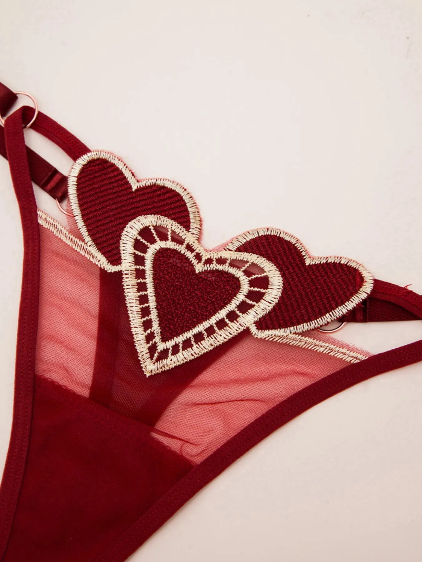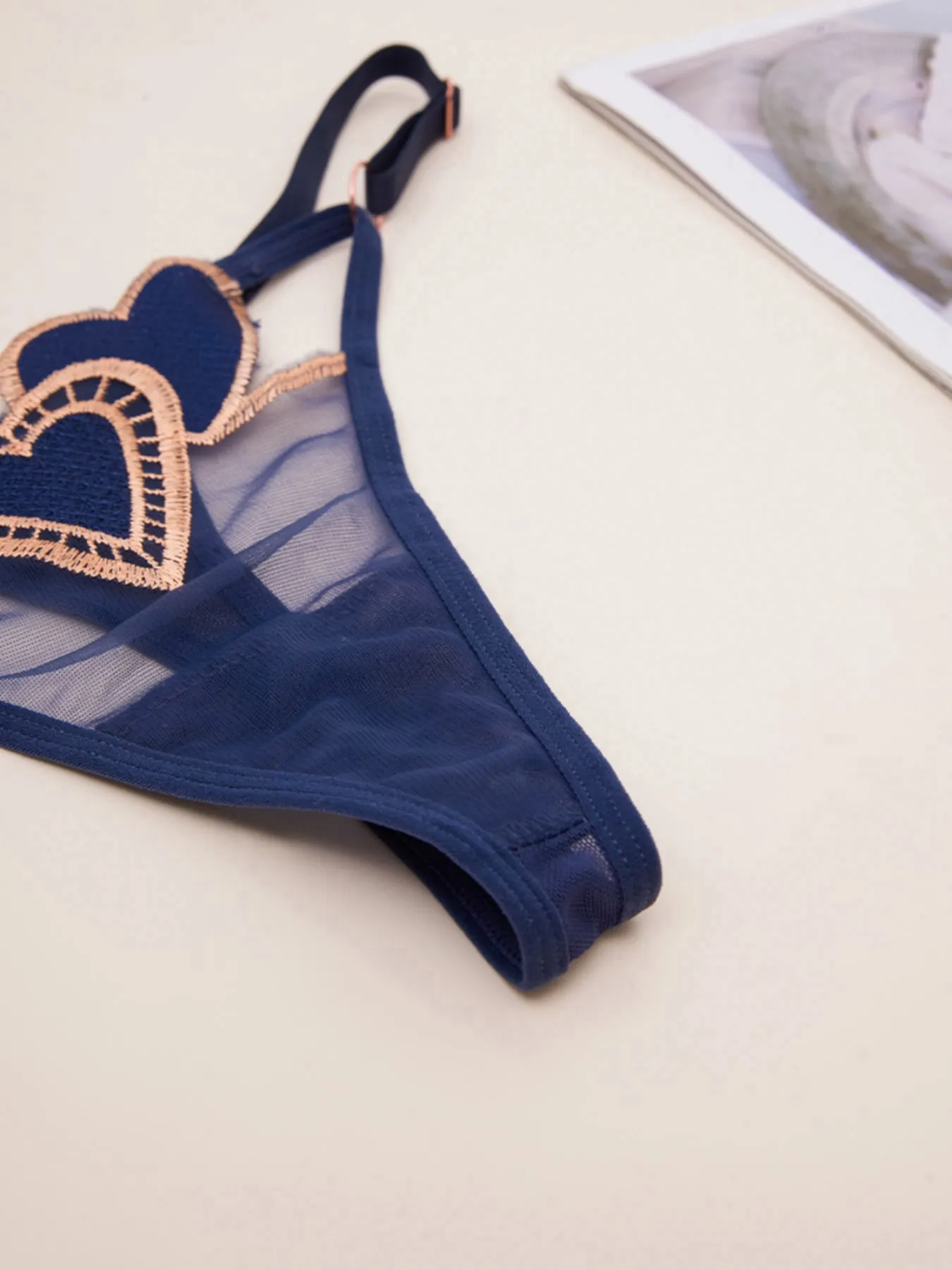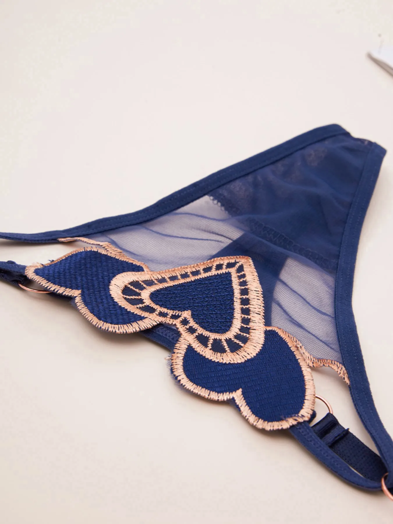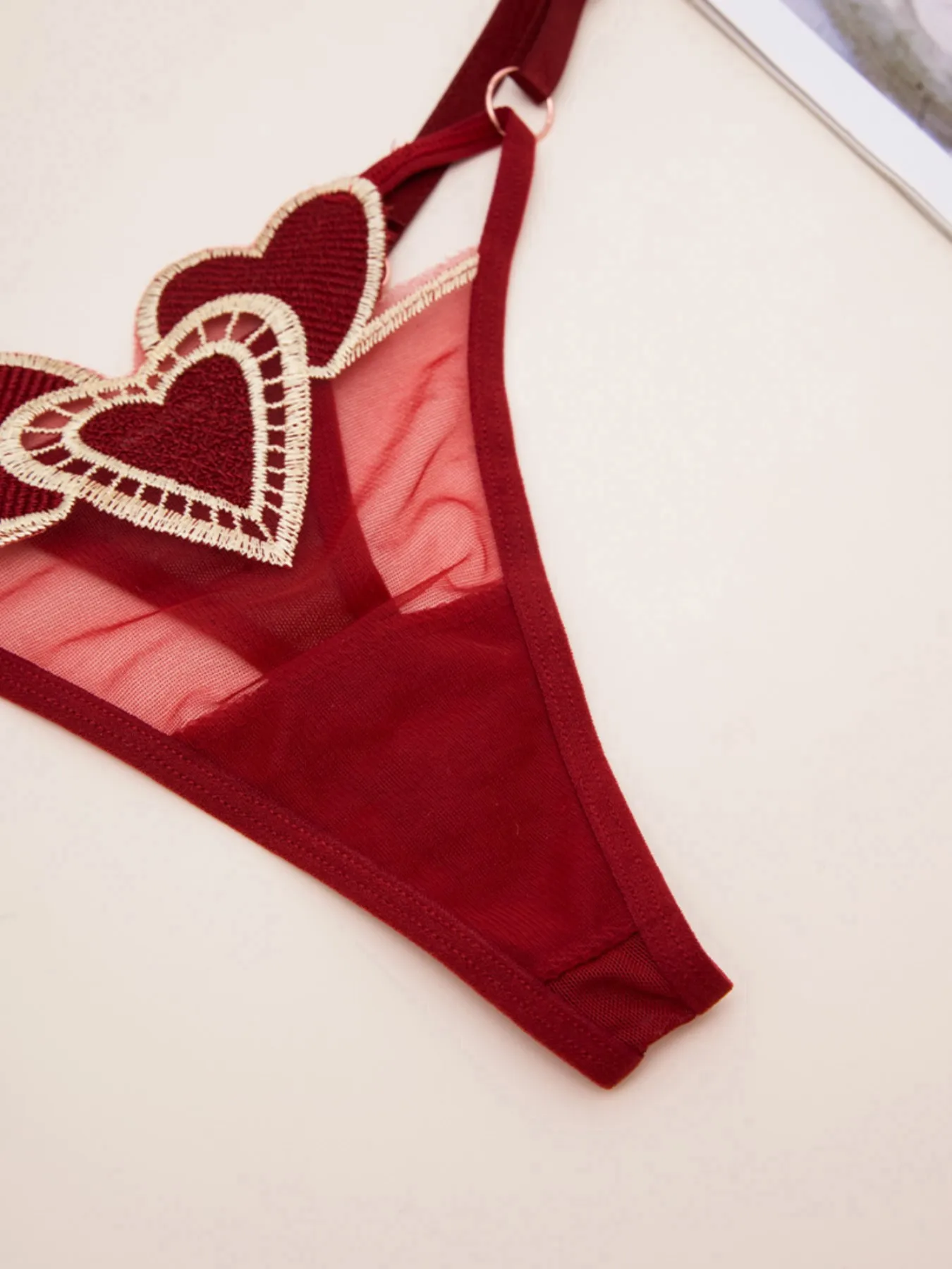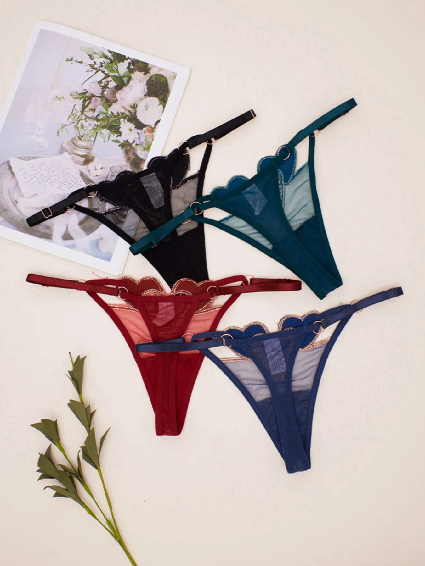 Lingerie Lace Embroidery Panties Sexy Temptation G-string Low Waisted Women Underwear Heart Printed Snug Breathable Hollow Thong