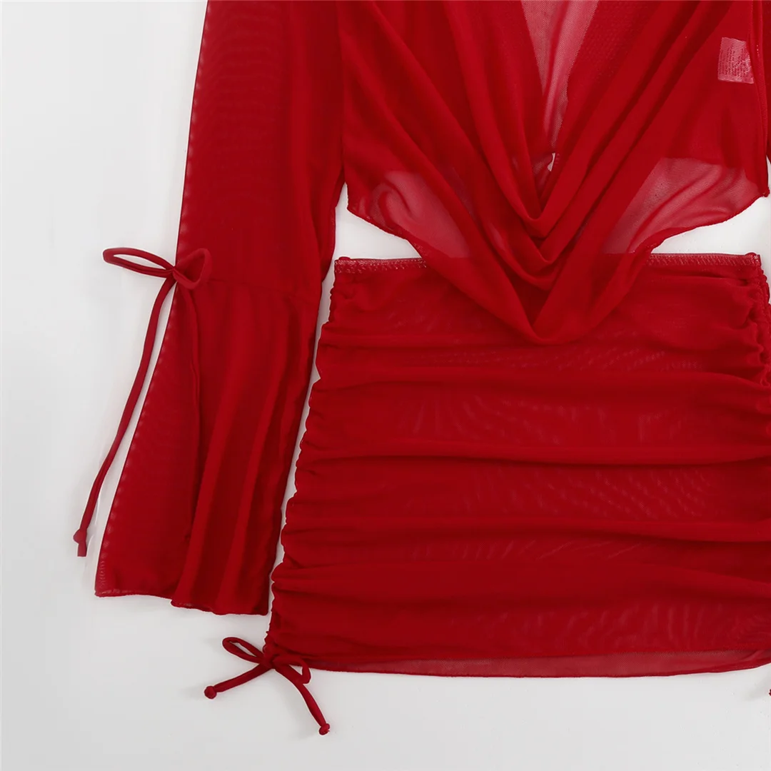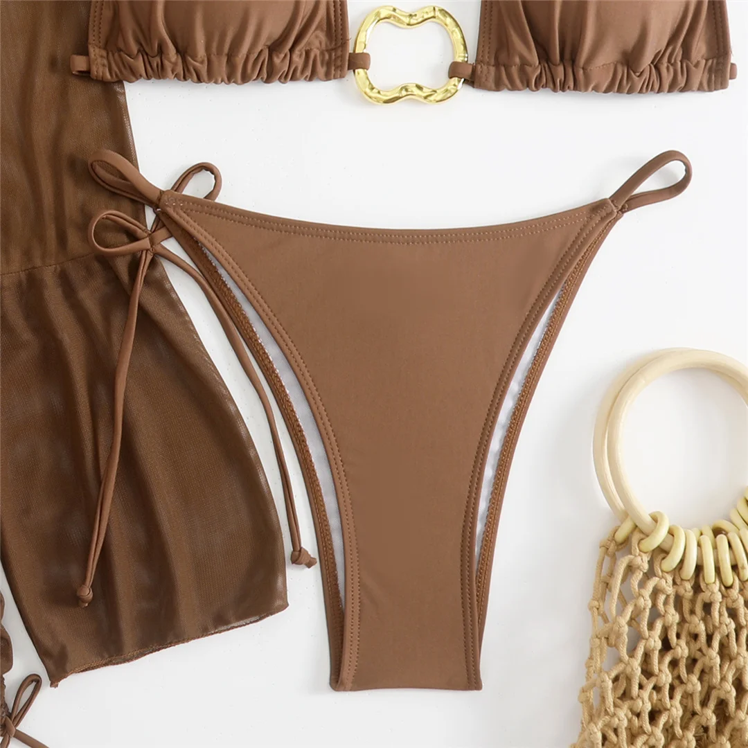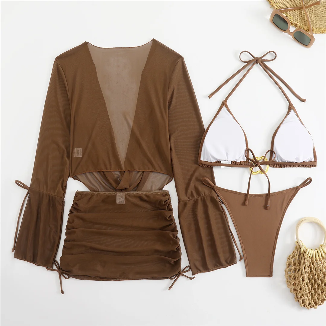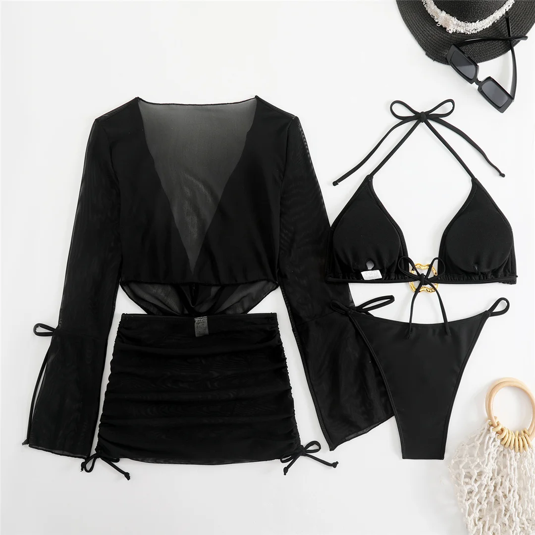 Long Sleeve Cover Up Skirt Halter Bikini Female Swimsuit Women Swimwear Four-pieces Bikini set Bather Bathing Suit Swim V7015