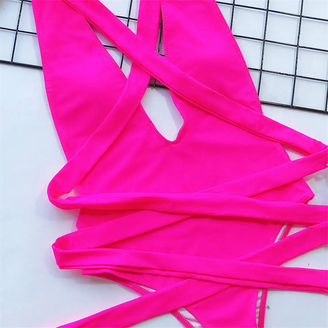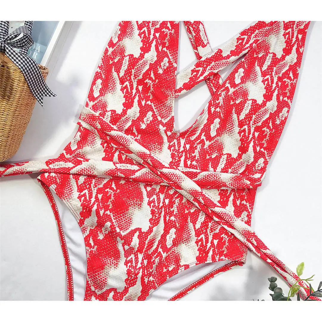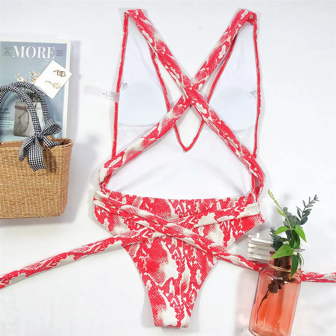 Long Strap Wrap Around Swim Suit For Women Swimwear One Piece Swimsuit Female Bather Snake Print Bathing Suit Beach V852