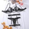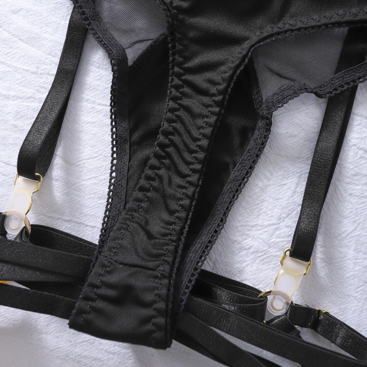 Luxury French See Through lingerie sexy woman 5-Piece Exotic Bra and Panty with Garters Transparent Seamless Underwear Women Set