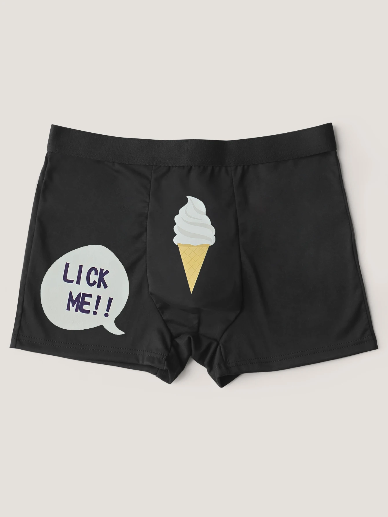 Mens Big and Tall Performance Underwear with Turn on Lick Me Prints Boxer Brief Sexy Breathable No Fly Short