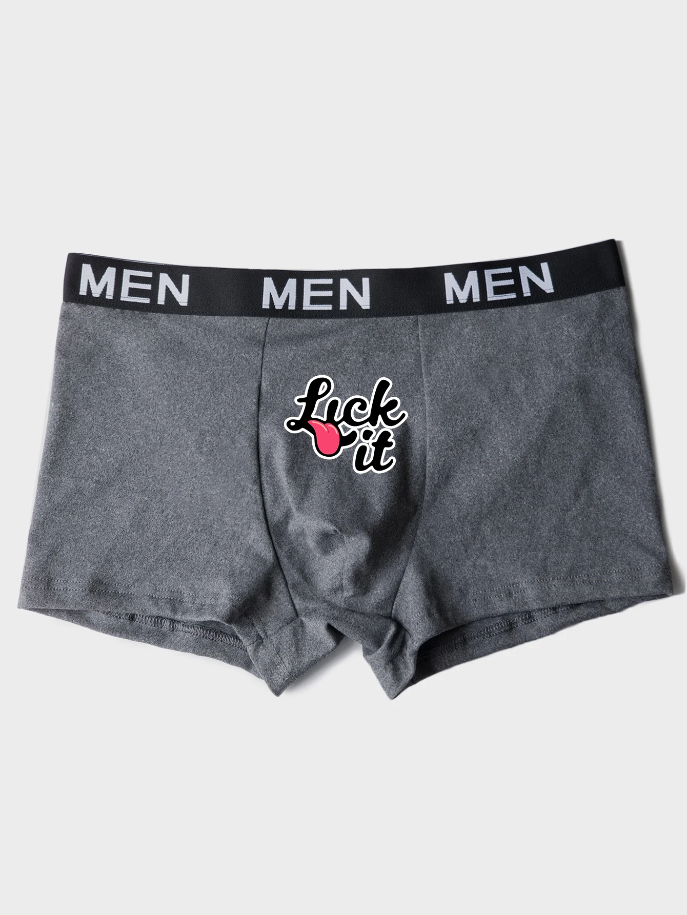 Men’s Boxer Briefs with Lick it Prints Trunks Sexy Funny Letter Boxer Short for Man Breathable No Fly Underwear