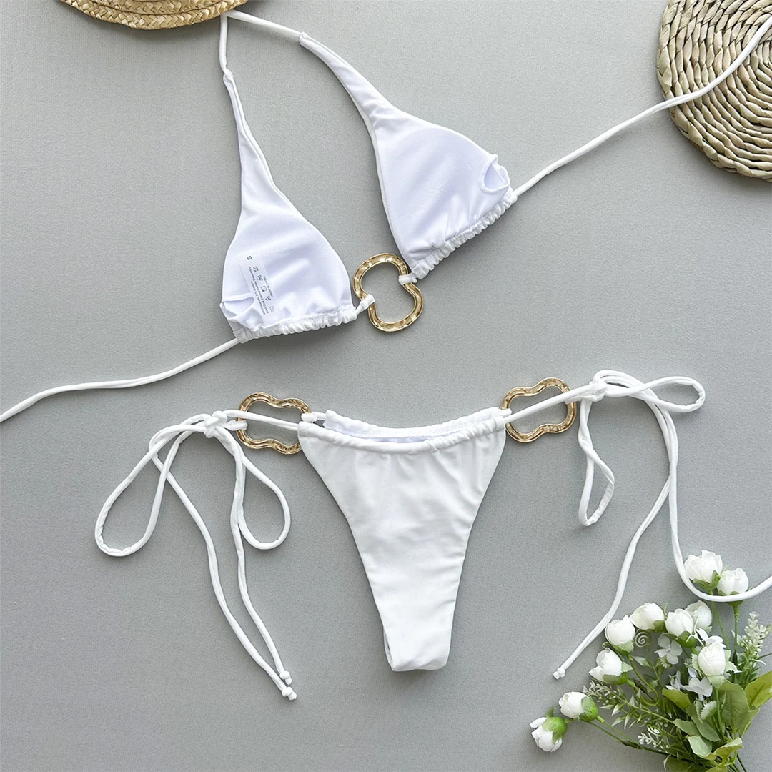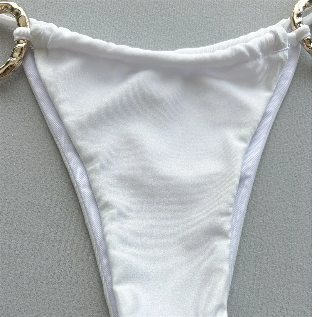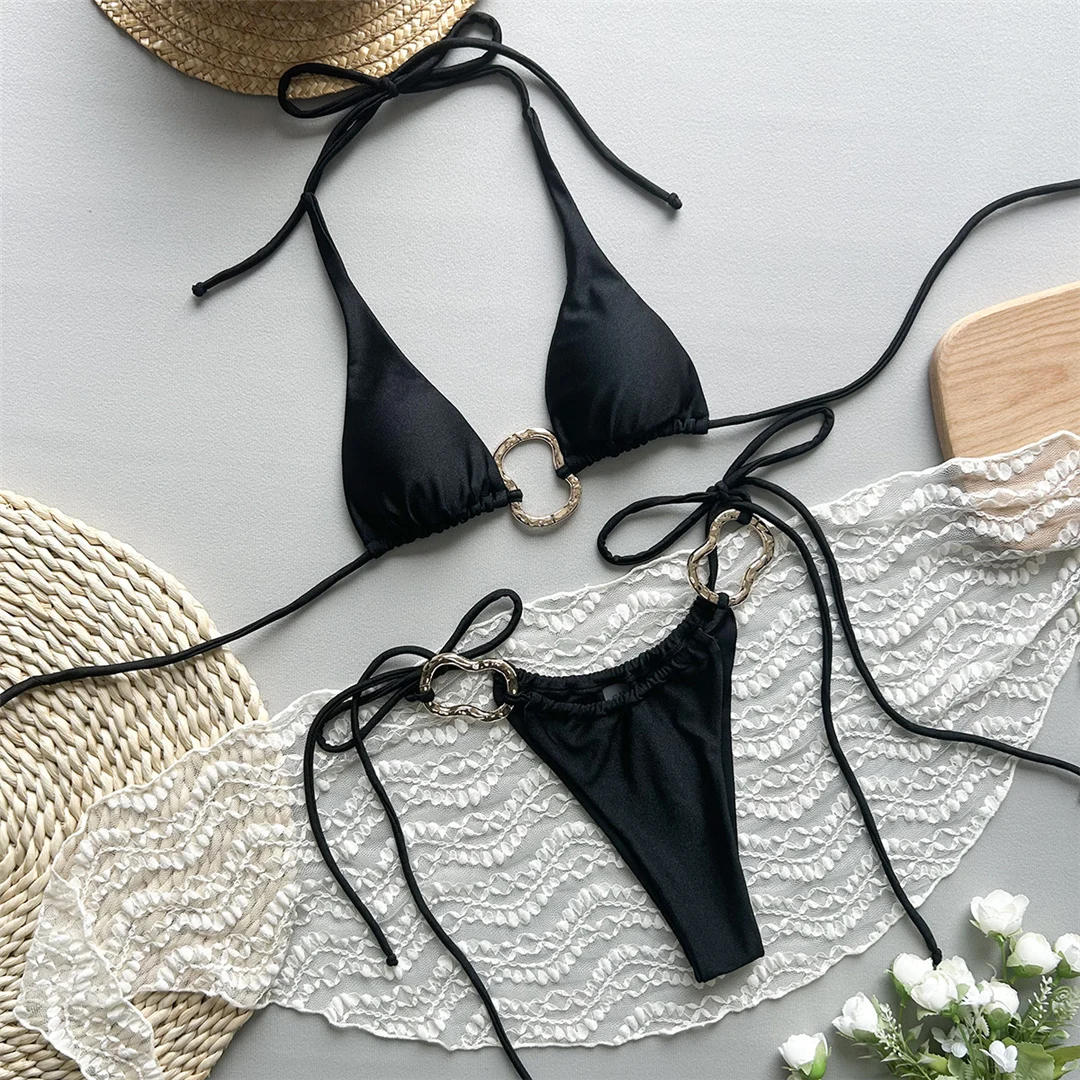 Metal Rings Halter Strappy High Cut Bikini Women Swimwear Female Swimsuit Two-pieces Bikini set Bather Bathing Suit Swim V5935