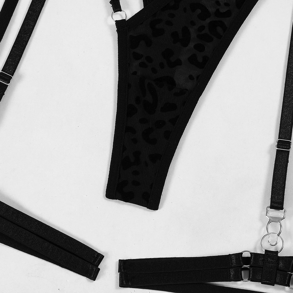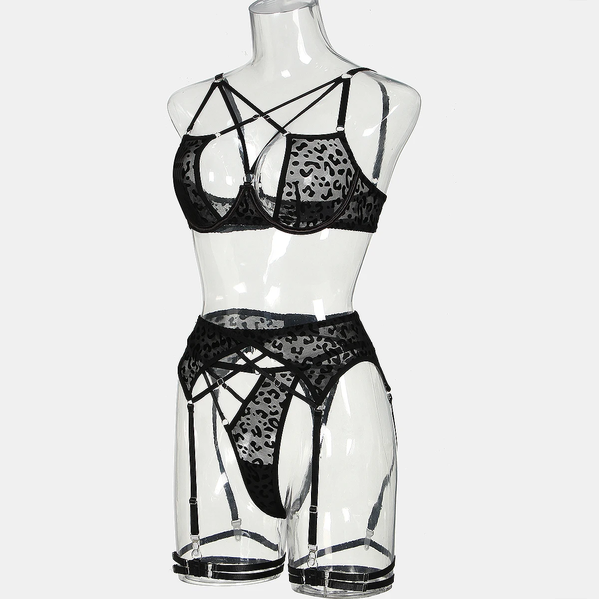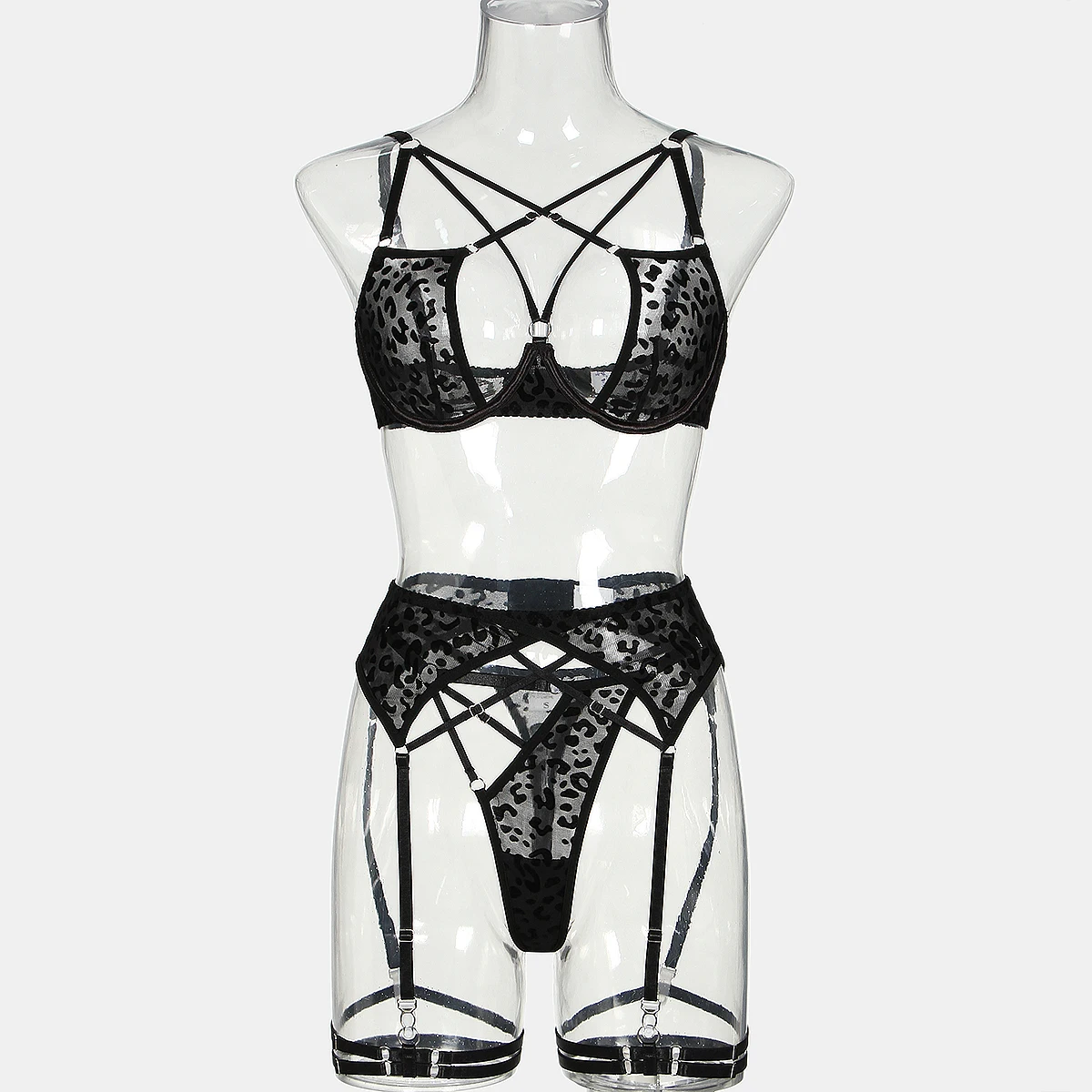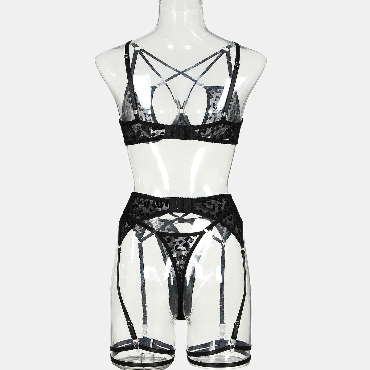 MUZISKAT 2023 New Bra Leopard Print Mesh Sexy Cross Webbing Hollow Erotic Lingerie Four And Five Sets Of Female