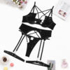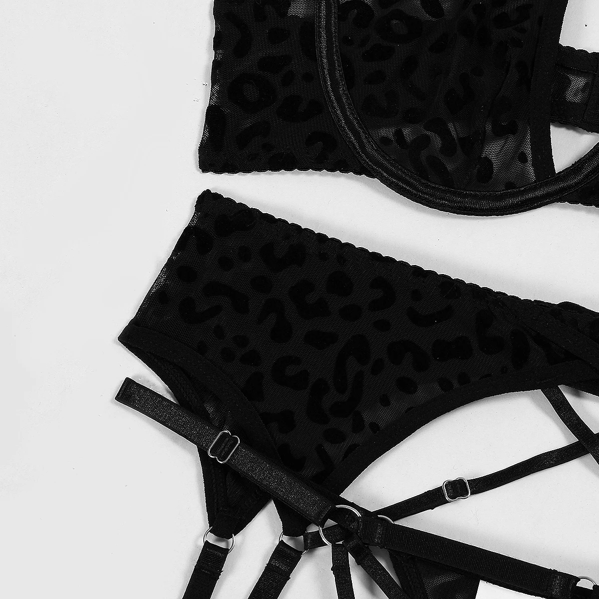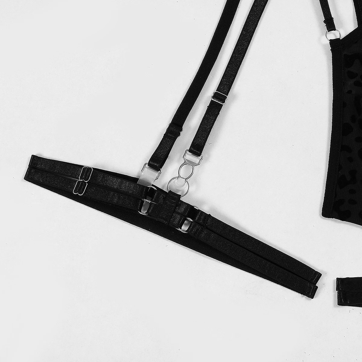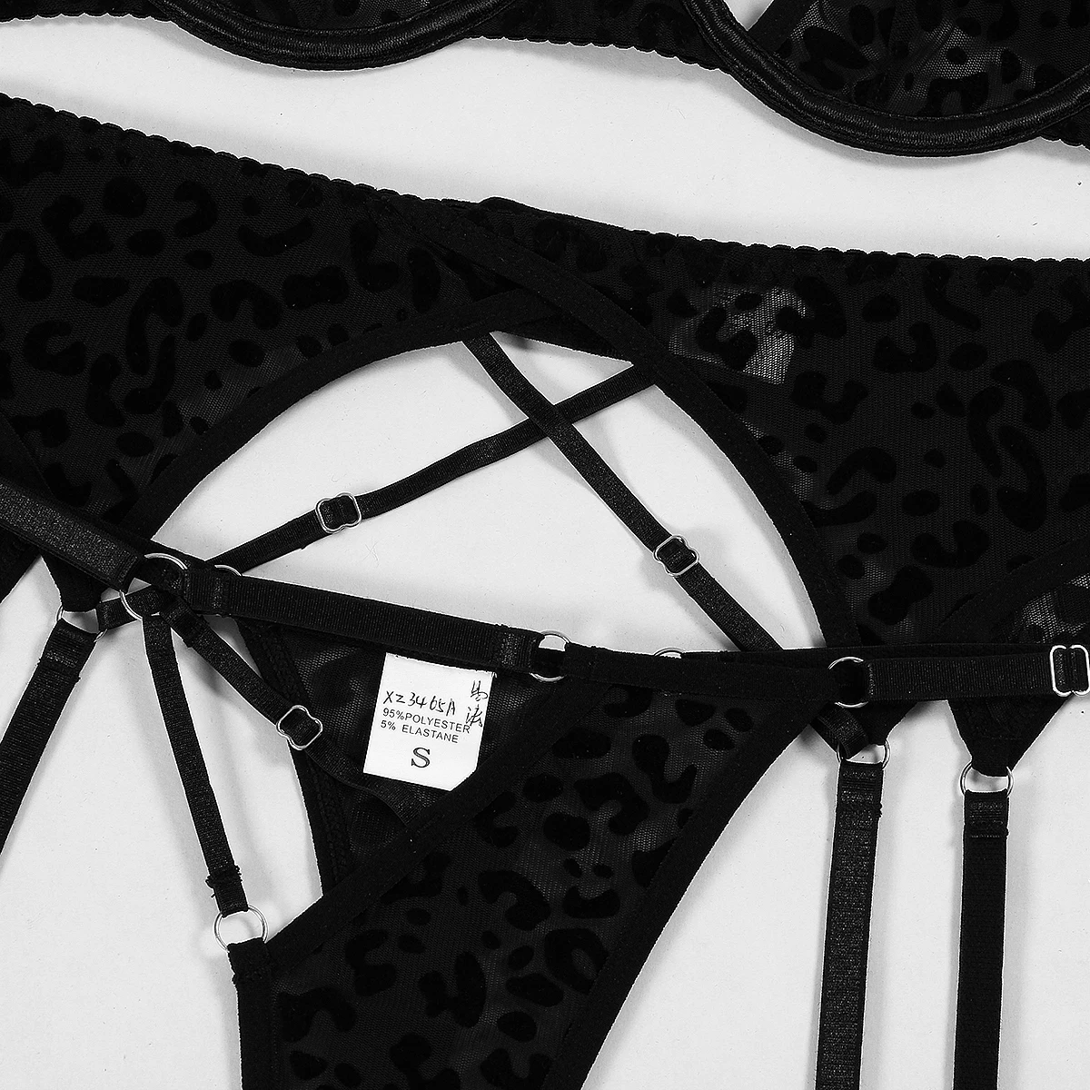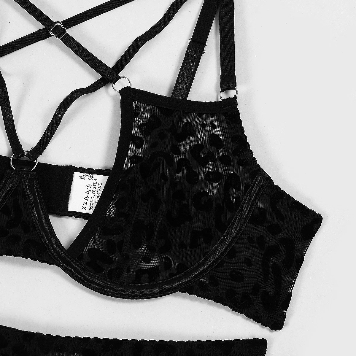 MUZISKAT 2023 New Bra Leopard Print Mesh Sexy Cross Webbing Hollow Erotic Lingerie Four And Five Sets Of Female