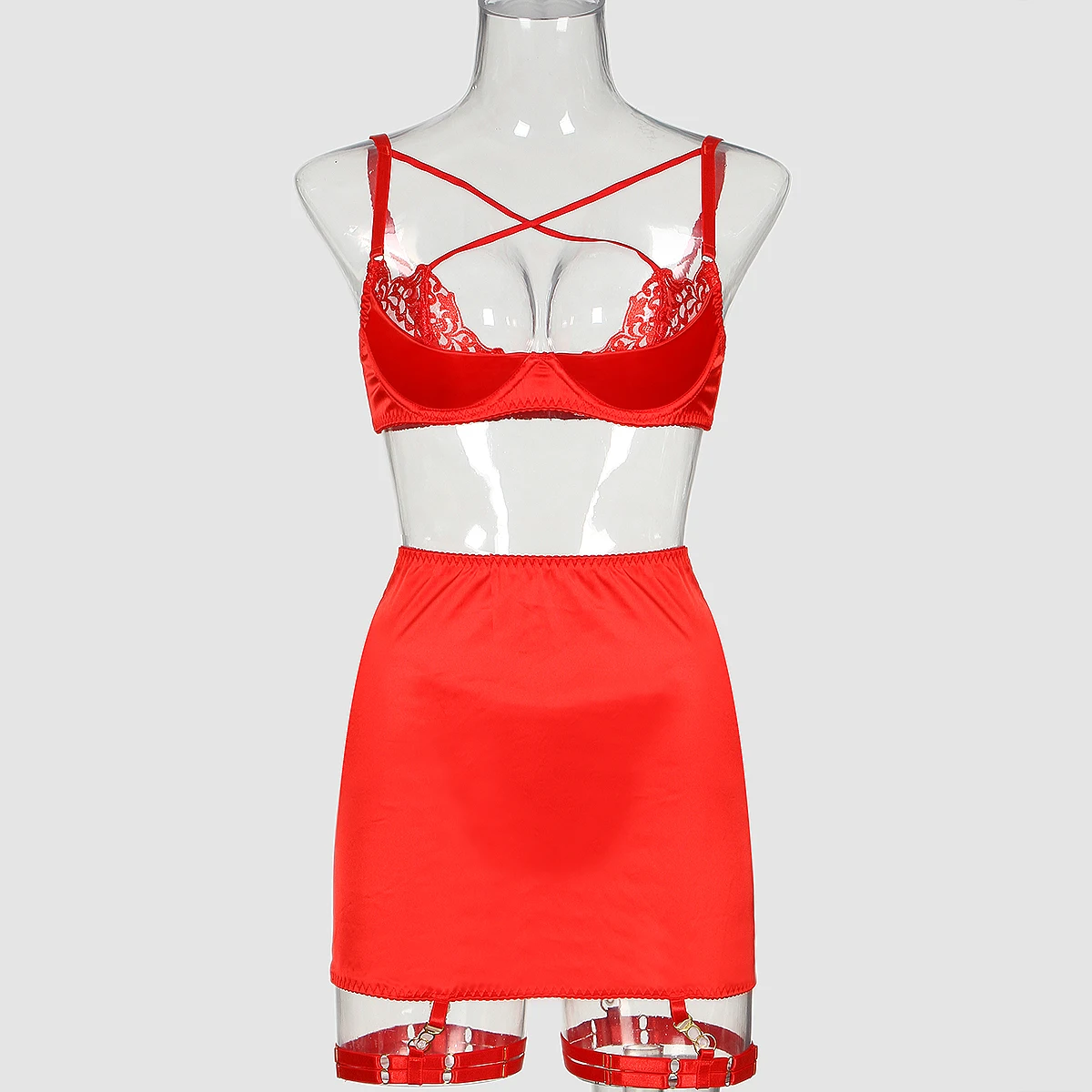 MUZISKAT 2023 Summer New Sexy Lingerie Cross Strap Package Hip Short Skirt Erotic Four And Five Piece Set