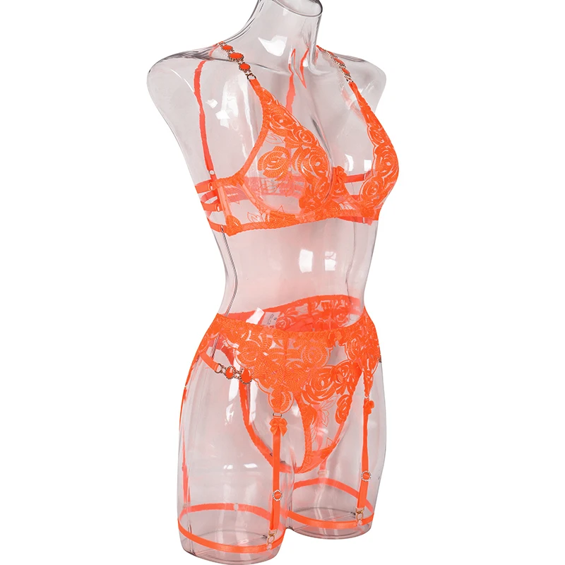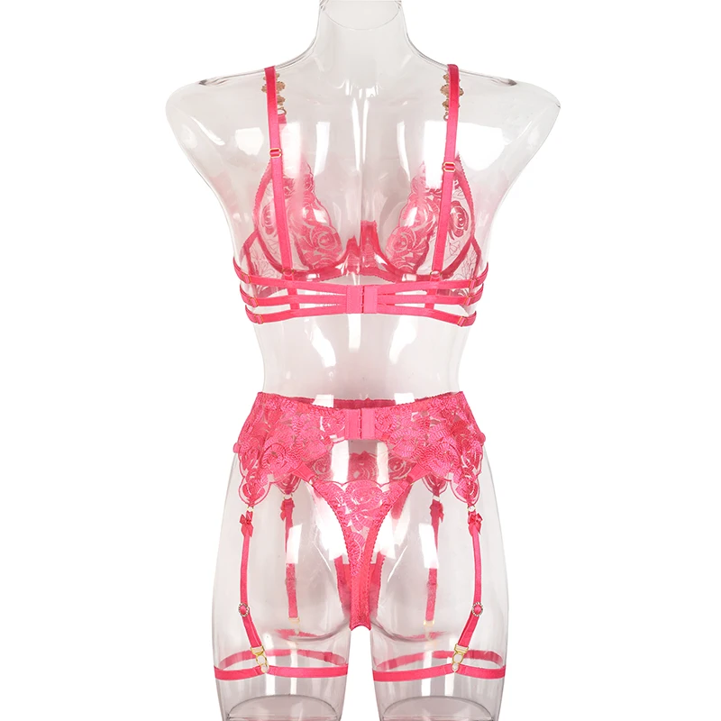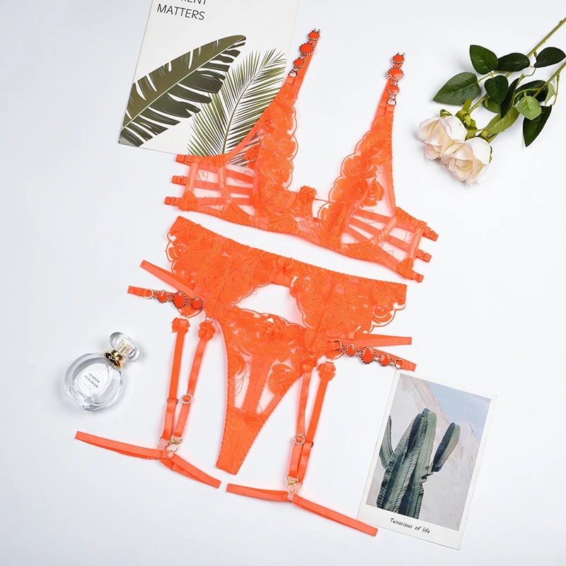 MUZISKAT 2024 Luxury Sexy Women’s Lingerie Sheer Mesh Bra Floral Embroidery Lingerie Set Exotic four-piece Set