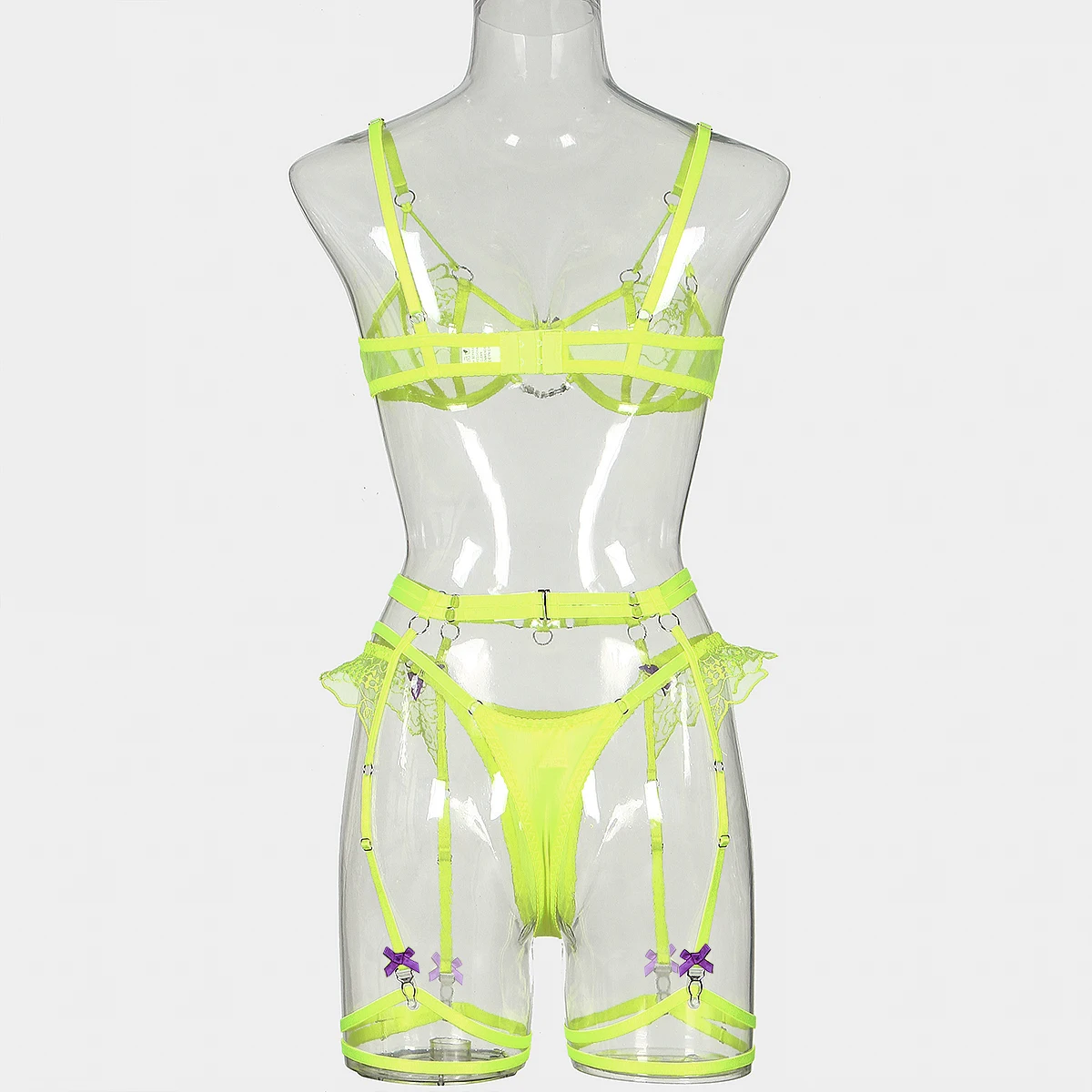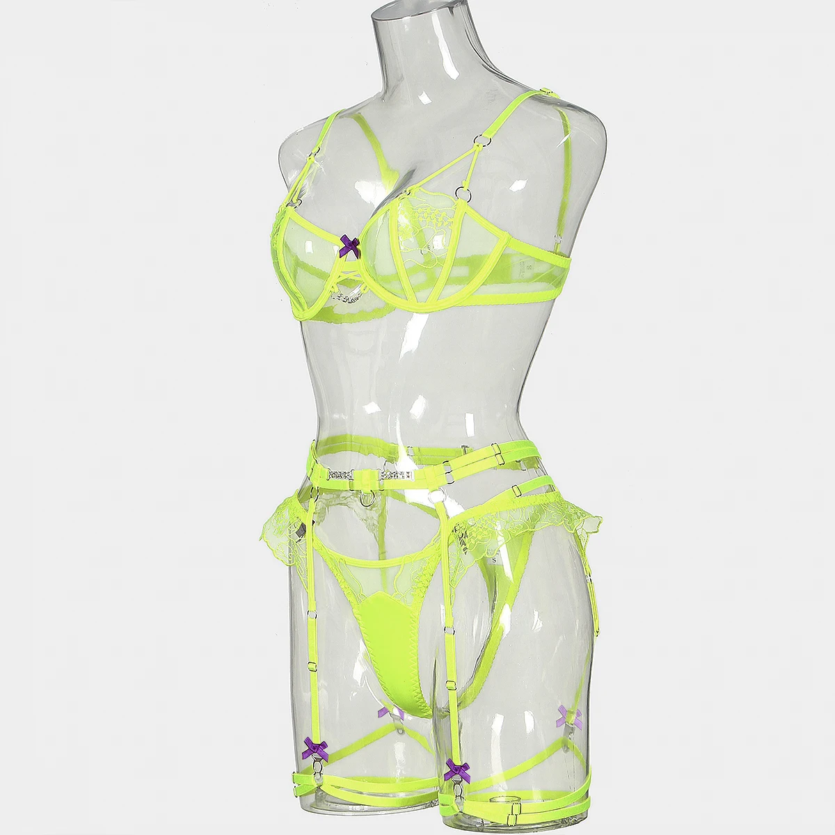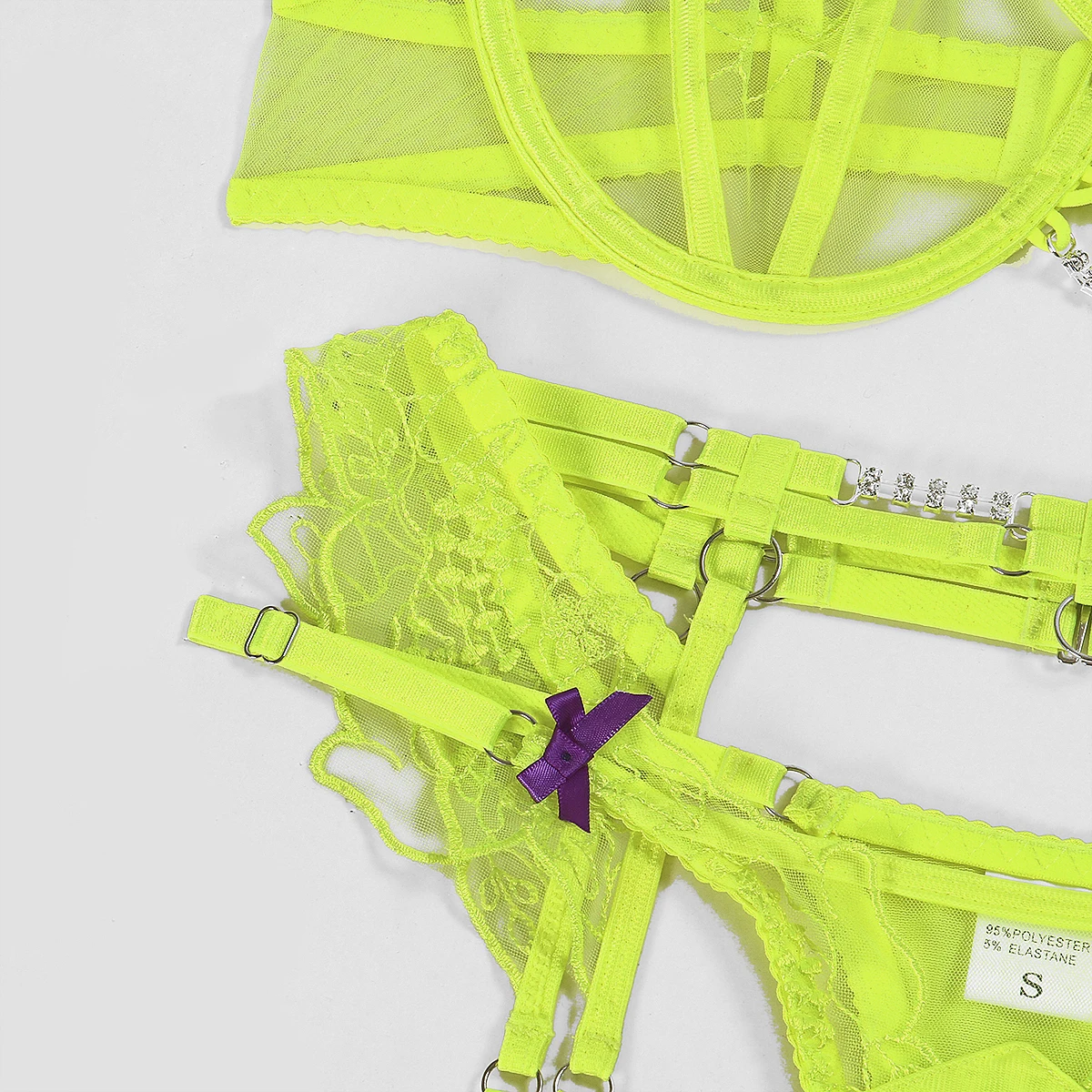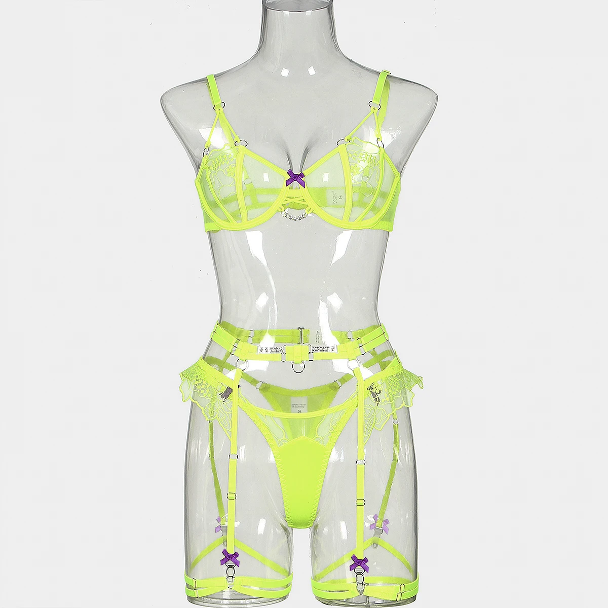 MUZISKAT 2024 New Bra Complex Craft Sexy See-Through Embroidery E rotic Lingerie Four-Piece Set