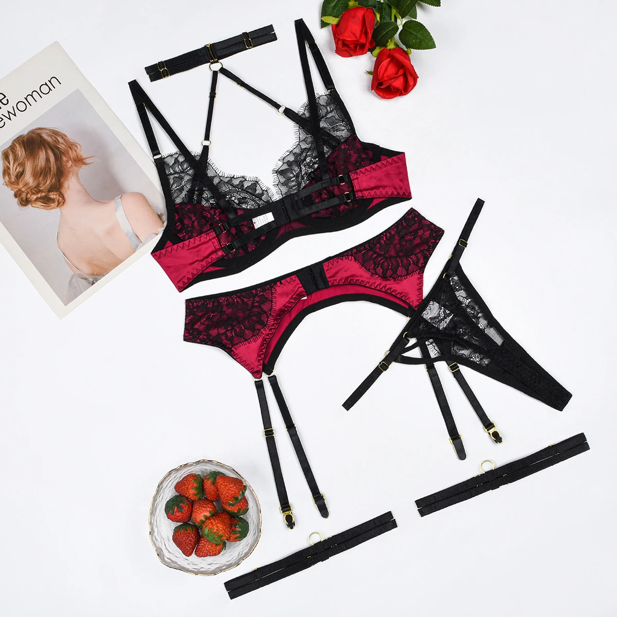 MUZISKAT 2024 New Erotic Set Embroidery Splicing Sexy Lace Body Shaping Lingerie Four Pieces Onlyfans