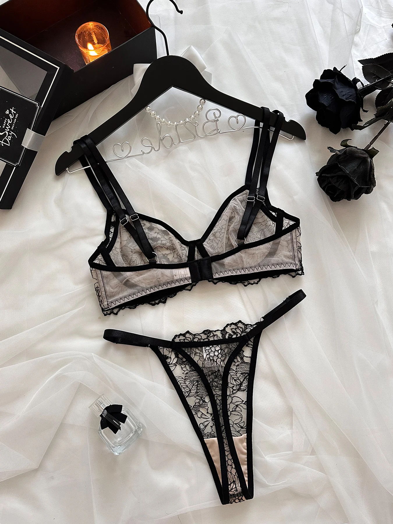 MUZISKAT 2024 new Europe And The United States Burst Models Sexy See-Through Mesh Splicing Embroidery Erotic Lingerie Sets