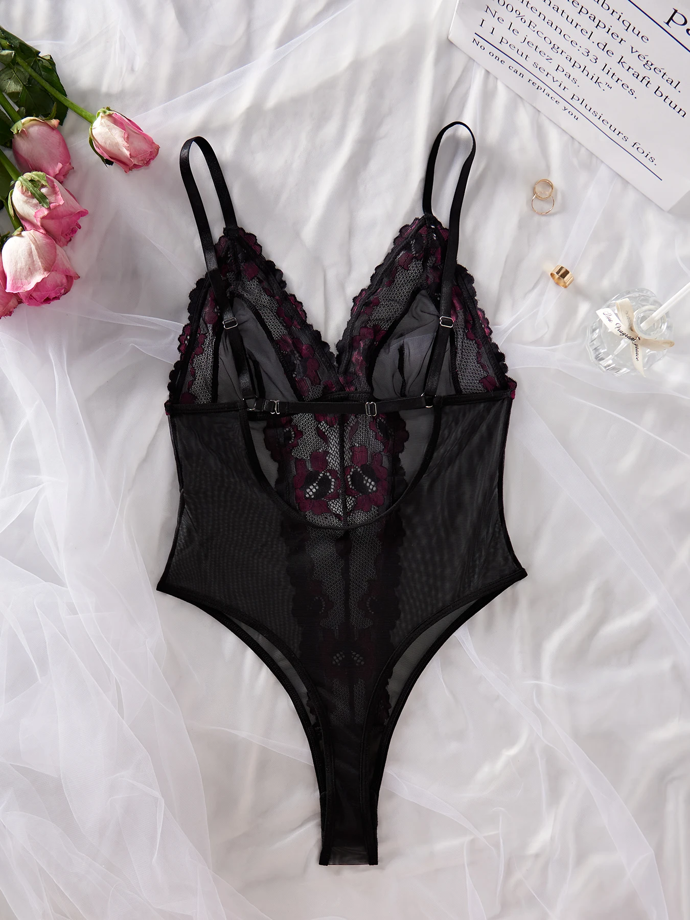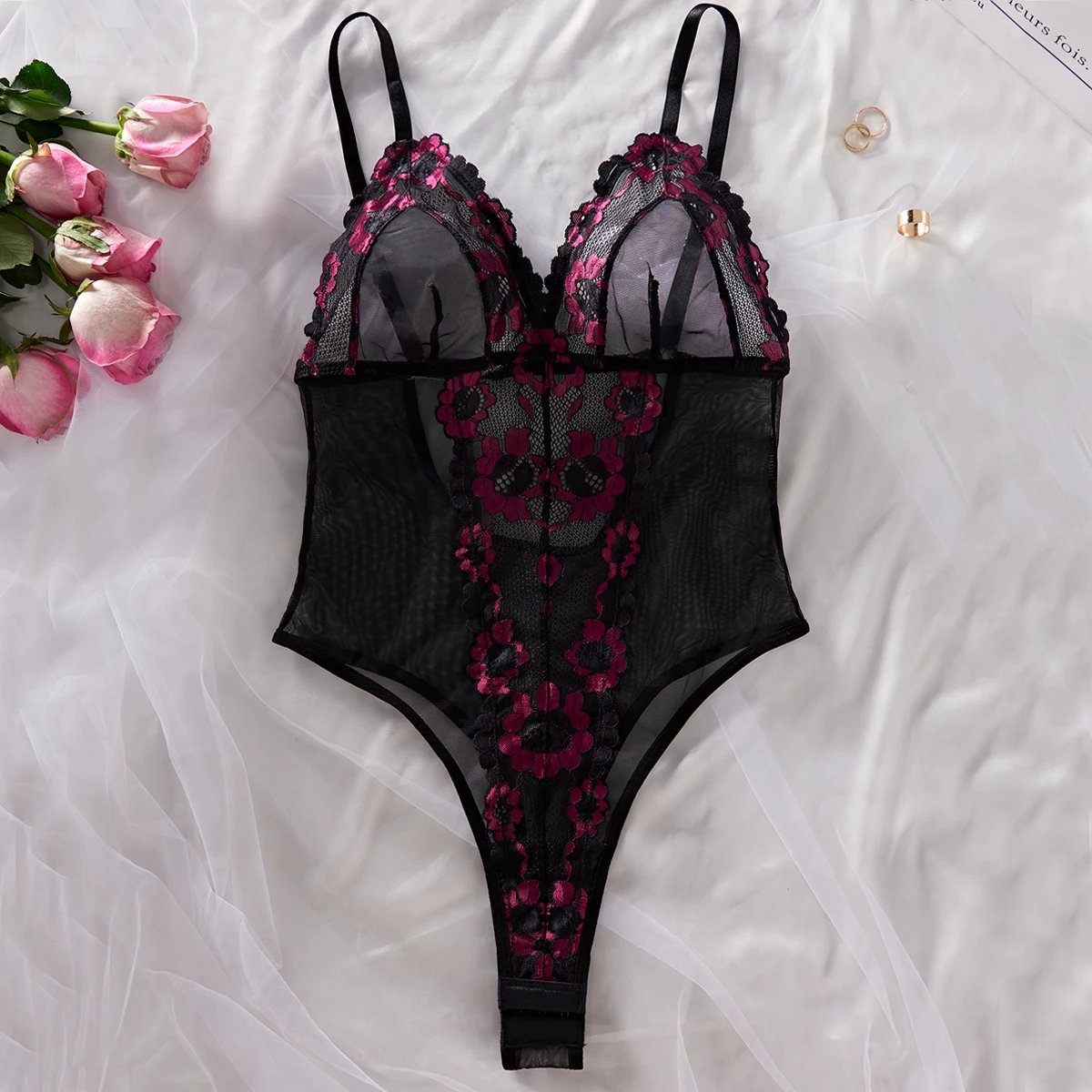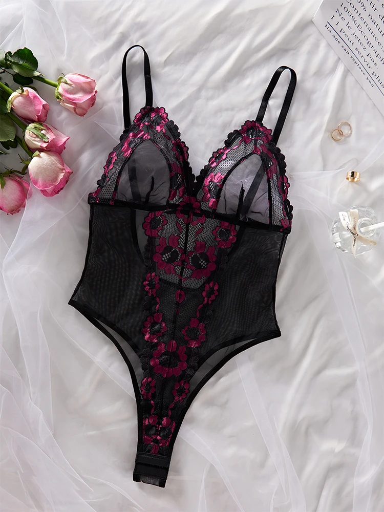 MUZISKAT 2024 New Women’s Mesh Embroidered Lace Splicing V-Neck Hollow Sexy Backless Erotic Jumpsuit Onlyfans