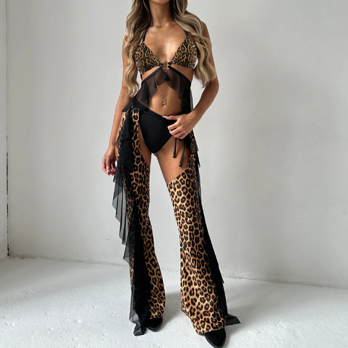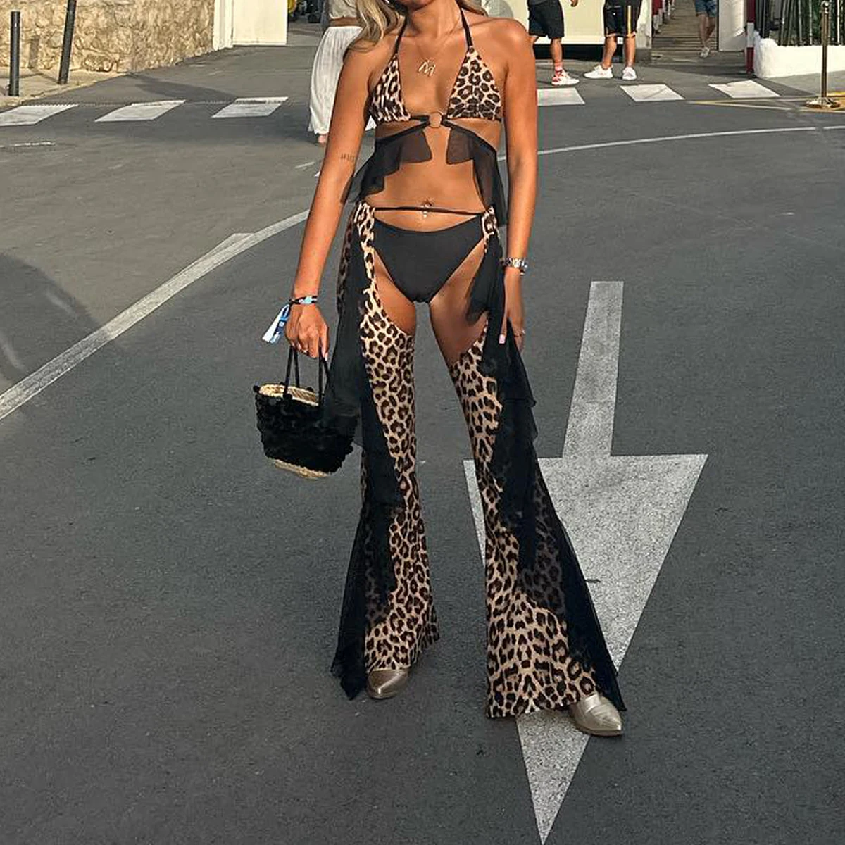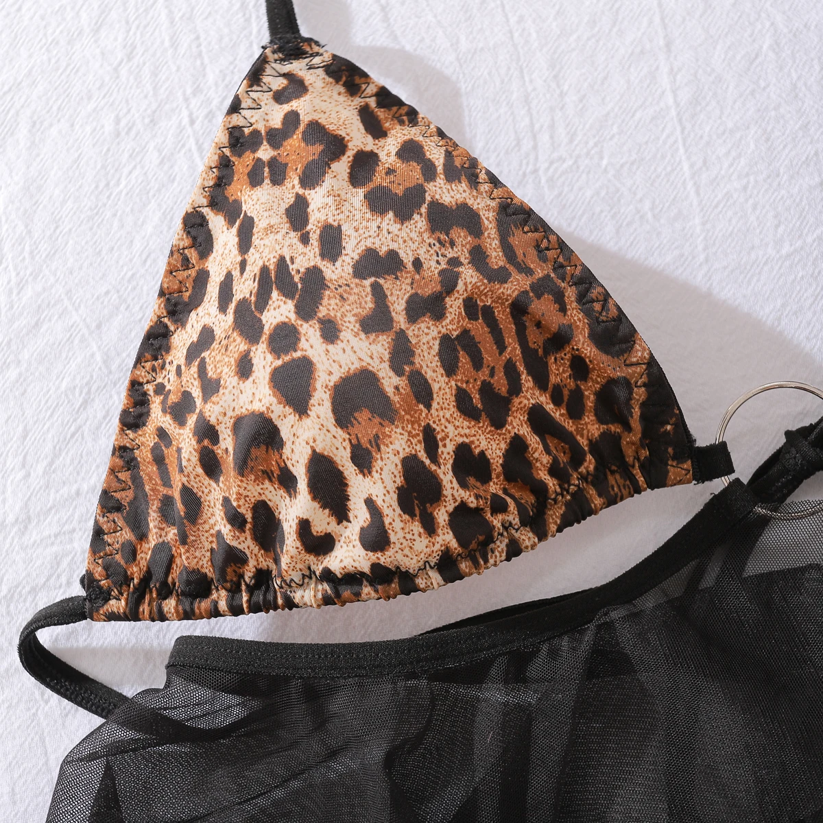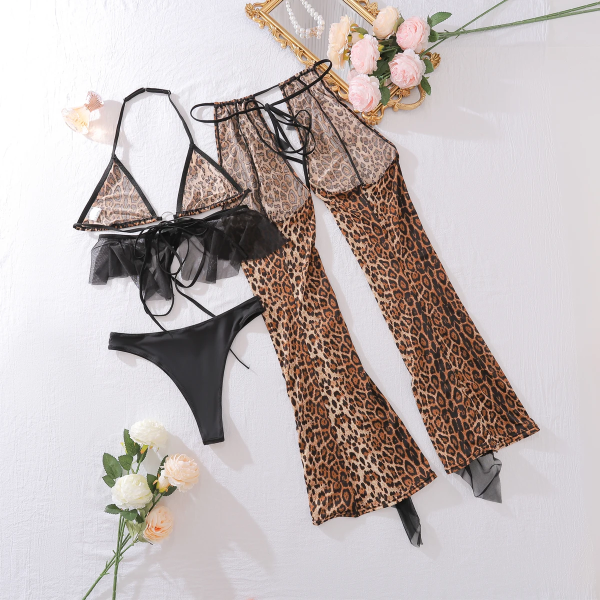 Muziskat 2024 New Women’s Sexy Lingerie Fashion Hottie Backless Leopard Print Neck Lingerie Trousers Erotic Three-piece Set