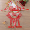 MUZISKAT 2024 Women’s Sexy Lingerie Red Fashion Embroidery Mesh See-Through Porn Lingerie with Suspender Belt Four-Piece Set