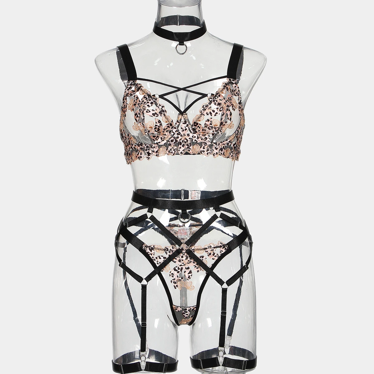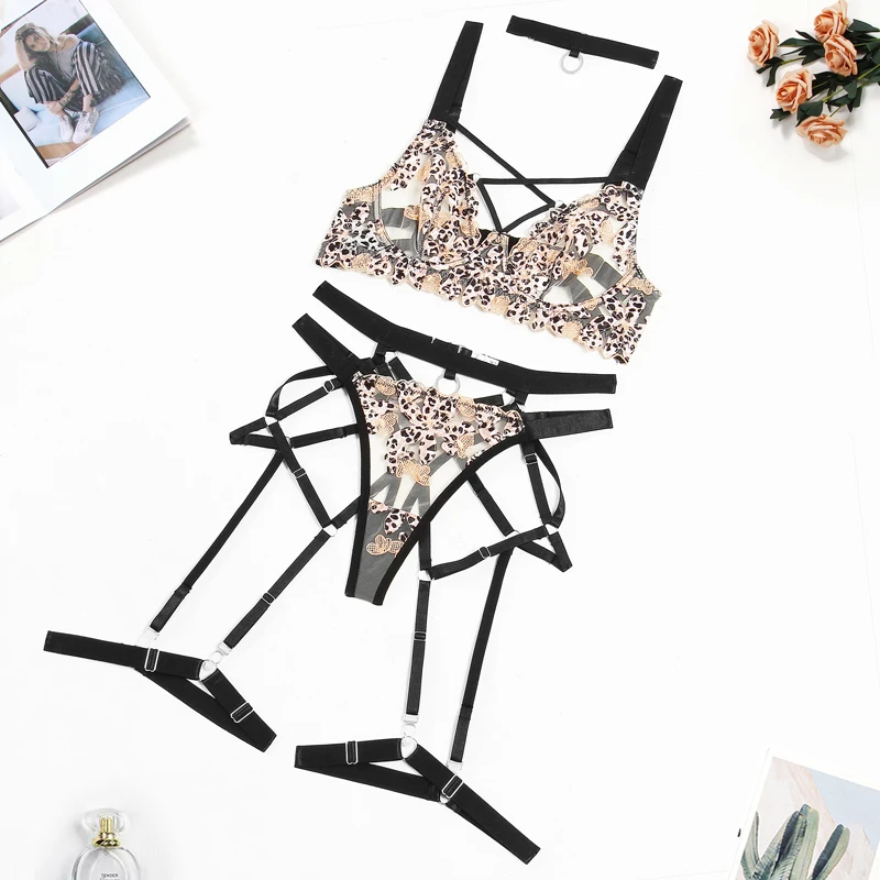 MUZISKAT 2025 Erotic Set See-through Leopard Embroidery Steel Ring Gathering Sexy Lingerie