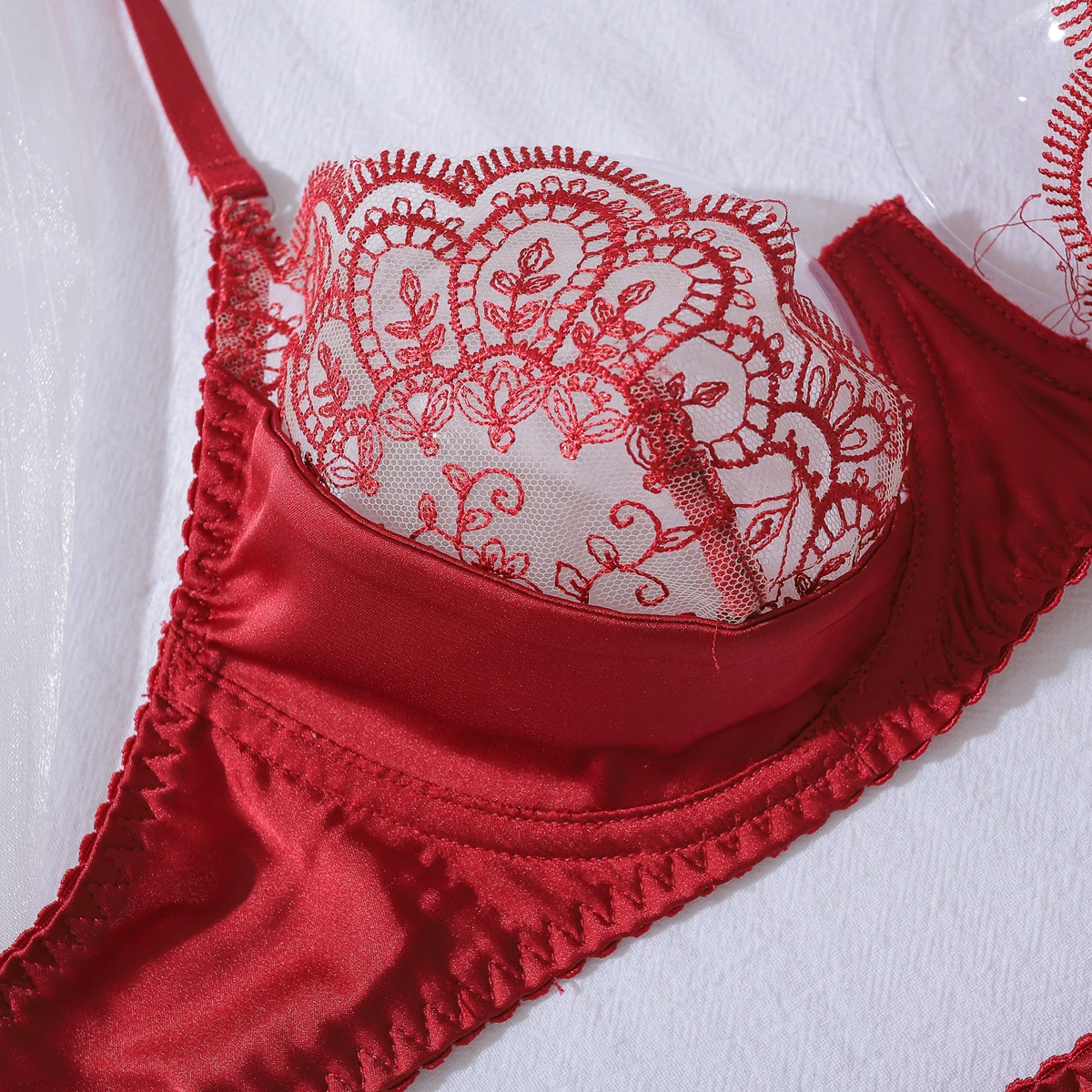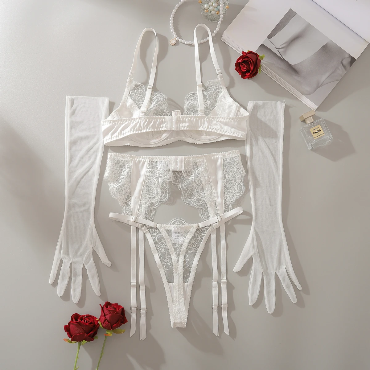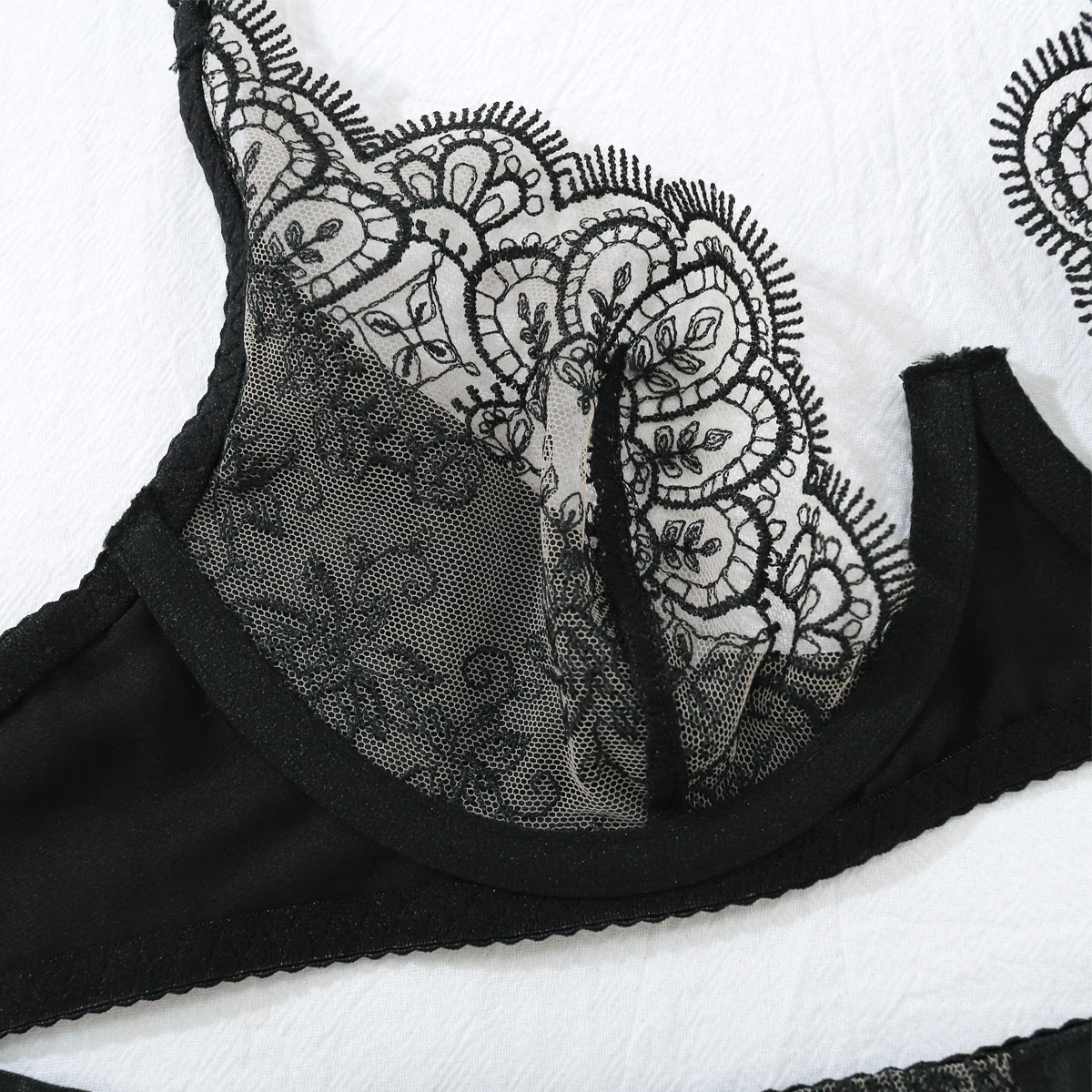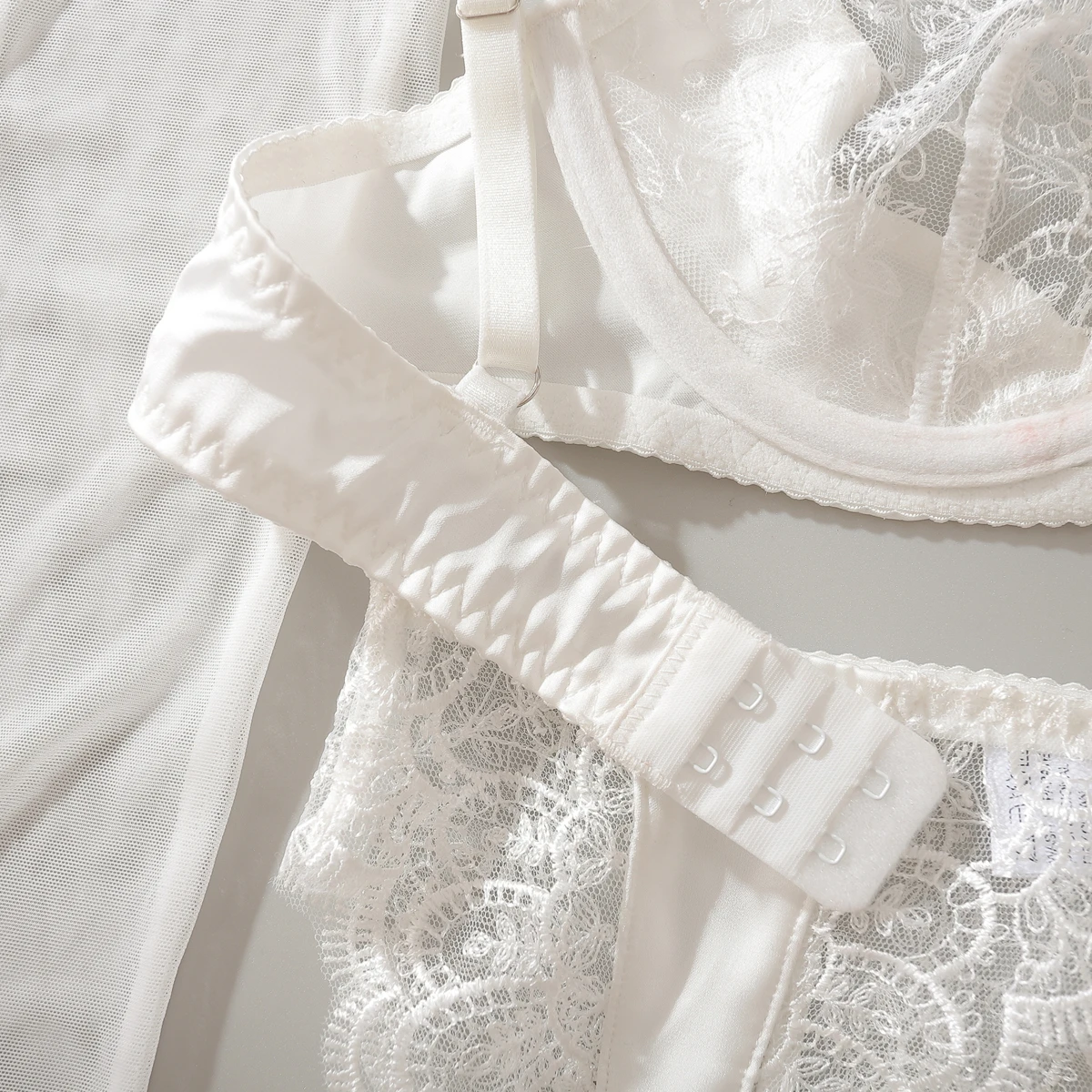 MUZISKAT 2025 Fall Fashion New Sexy Embroidered Lace Stitching Craft Interest Perspective Back Underwear four-piece Set