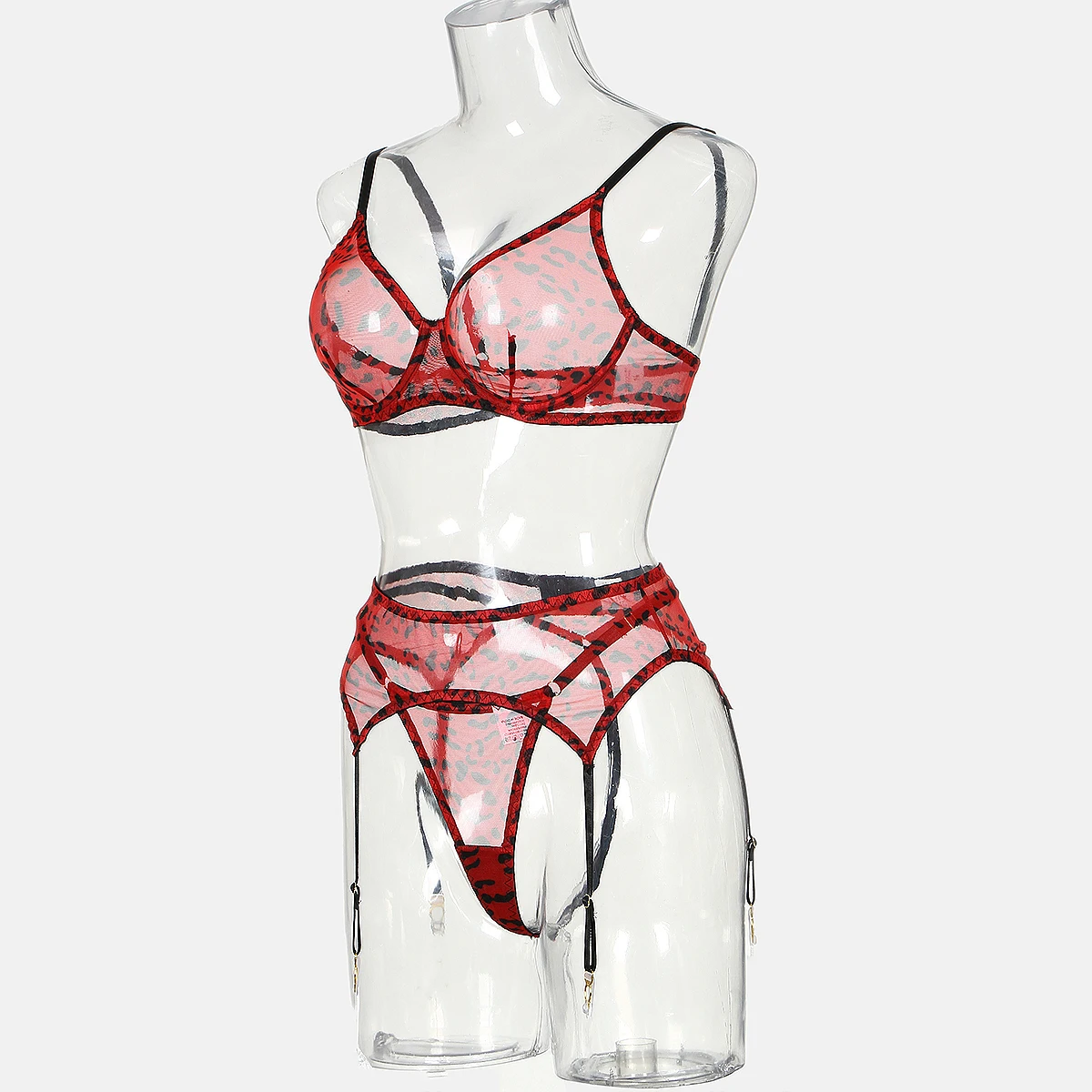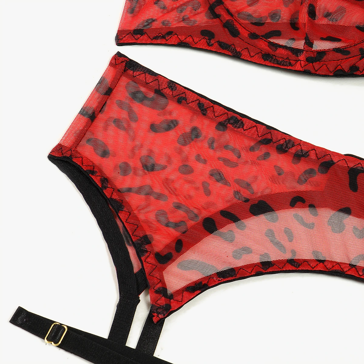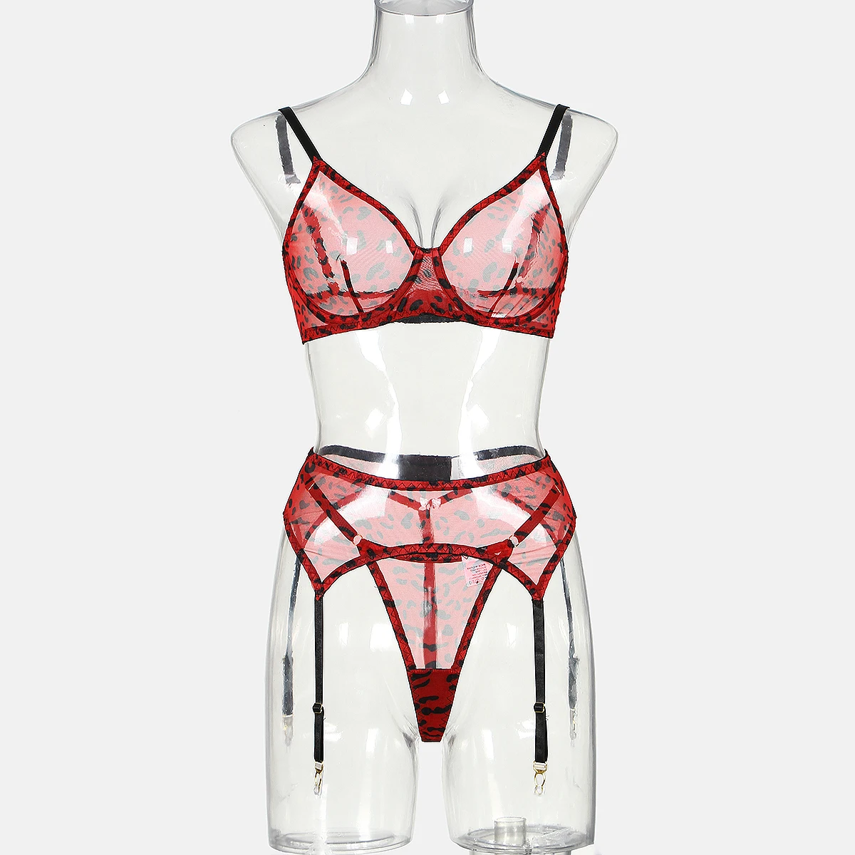 MUZISKAT 2025 New Fashion Female Pops Comfortable Leopard Mesh Sexy Erotic Lingerie Garter Belt Three-Piece Set Female