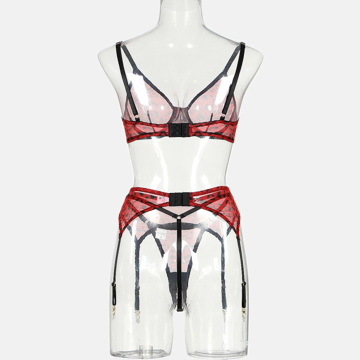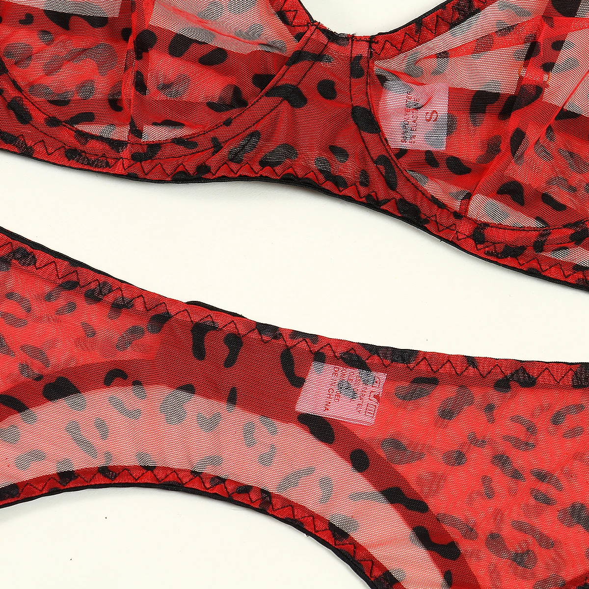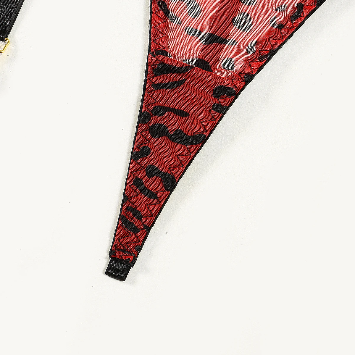 MUZISKAT 2025 New Fashion Female Pops Comfortable Leopard Mesh Sexy Erotic Lingerie Garter Belt Three-Piece Set Female