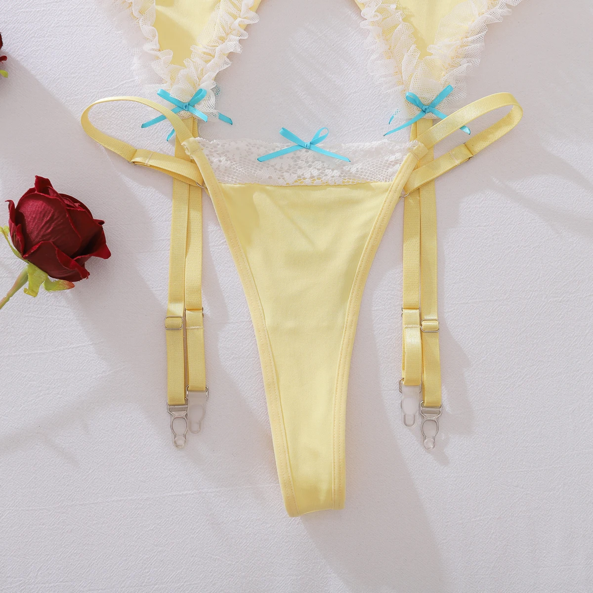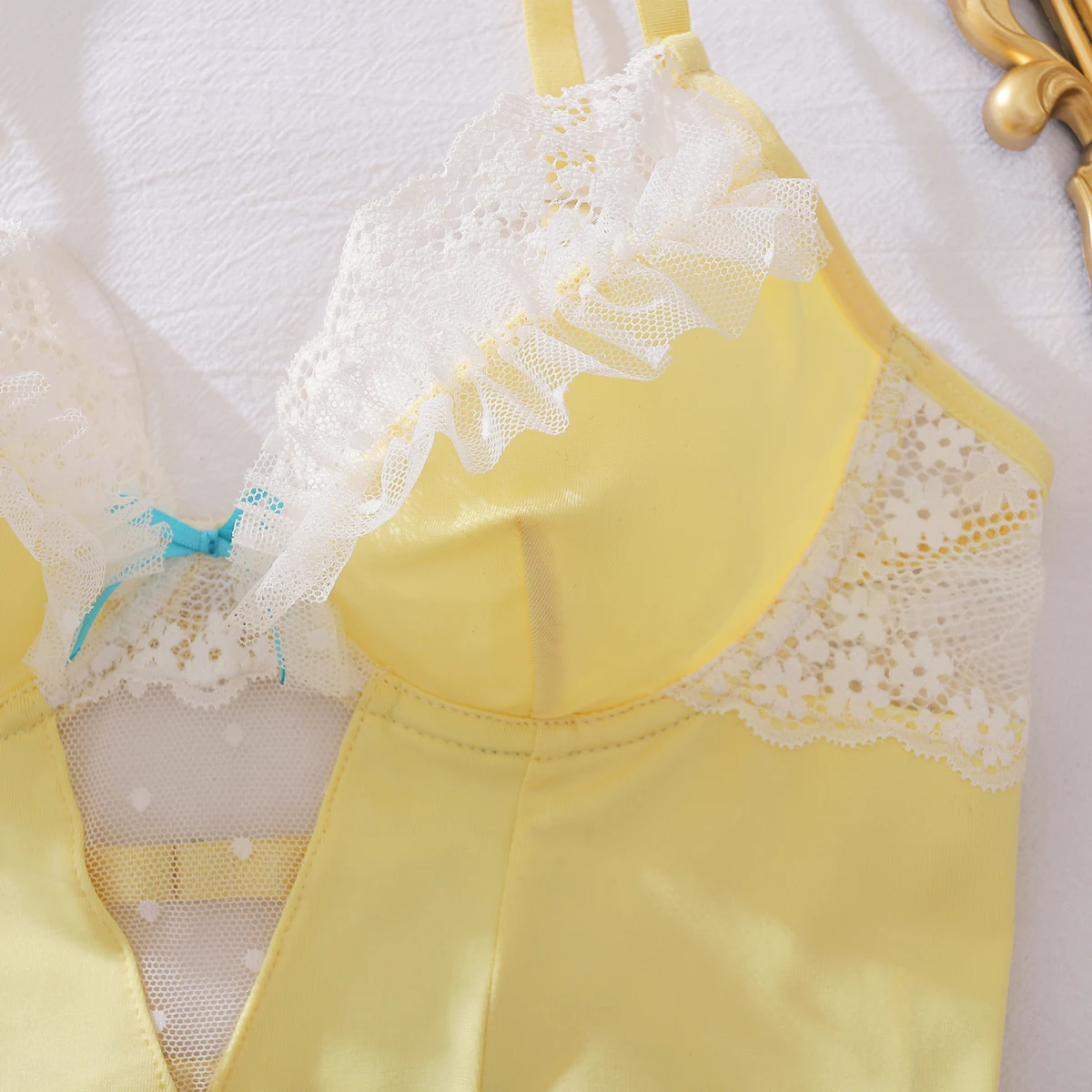 MUZISKAT 2025 New Perspective Mesh Splicing Lace Lace Design Sensual Sleeping Skirt Sexy Underwear Two Piece Set